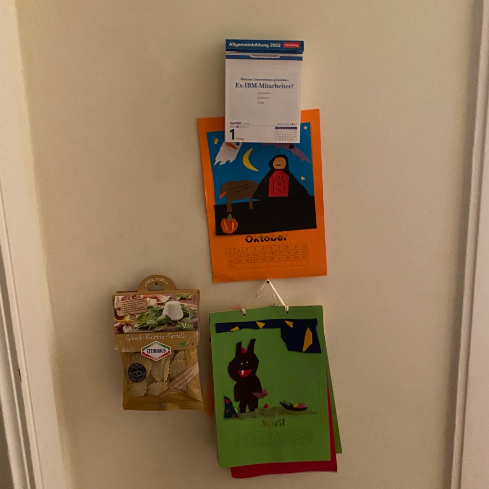 [kneteeis:] „Huch? Wieso liegt denn hier jetzt der Kalender? Und wo sind die Nudeln hin?“