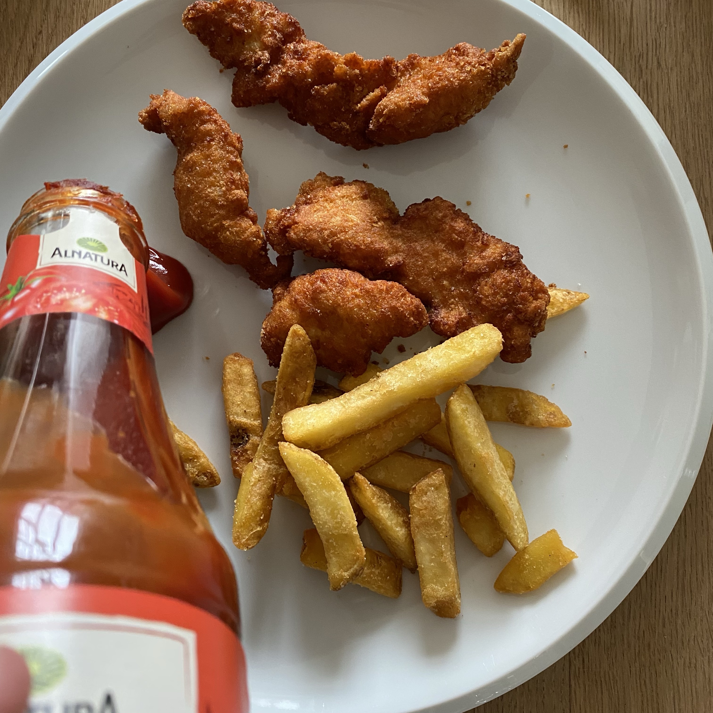 [Kurz darauf. GJ:] „Der Currywurstladen hat zu. Wollen wir stattdessen Burger und Chicken Fingers bestellen?“