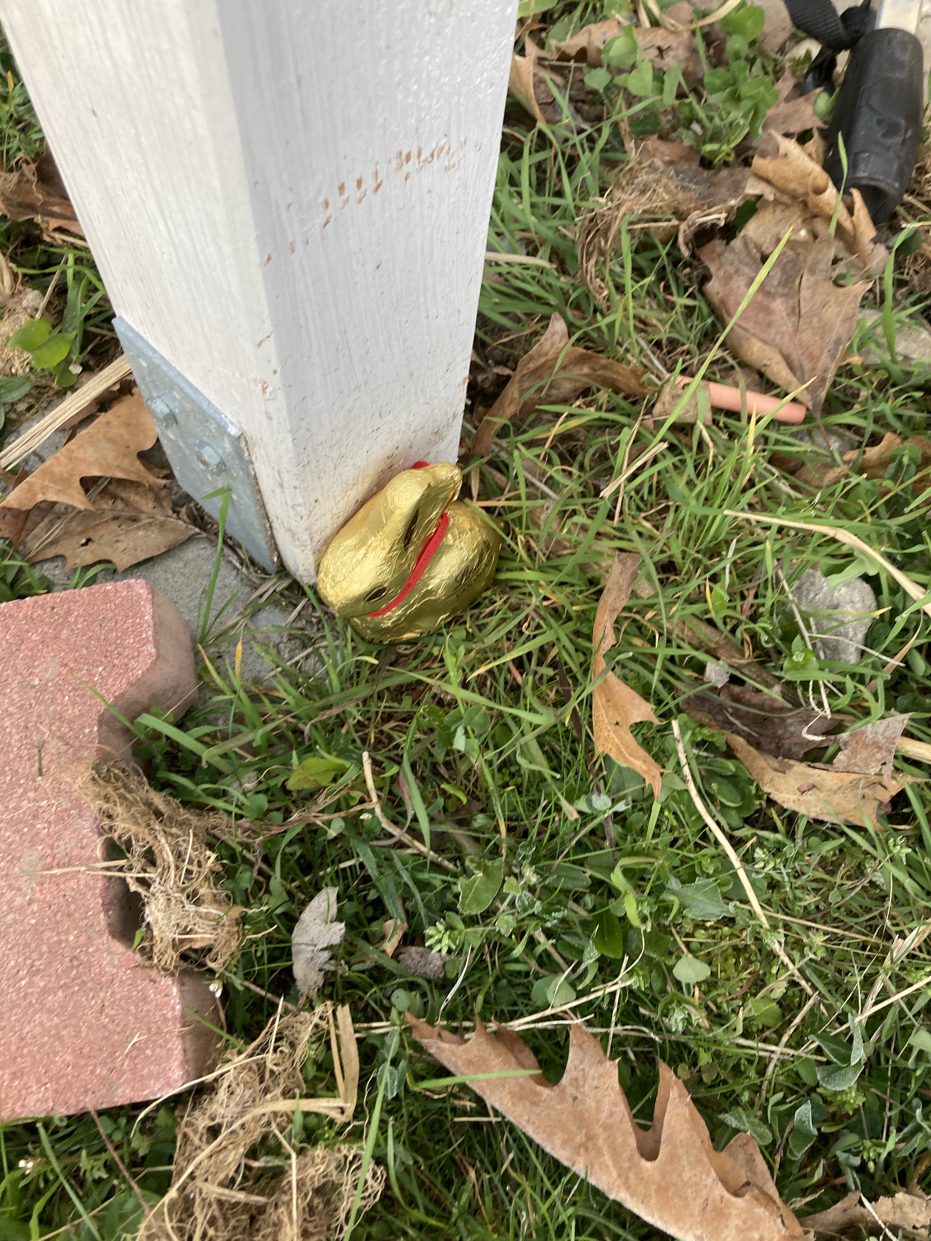 [kneteeis:] „Ha! Der große Junge ist unterwegs – da kann ich mir ein leckeres Ostermittagessen mit Sachen machen, die er nicht so gerne mag. Fleisch, das nach Streichelzoo schmeckt, und Grillpaprika – das wird toll!“