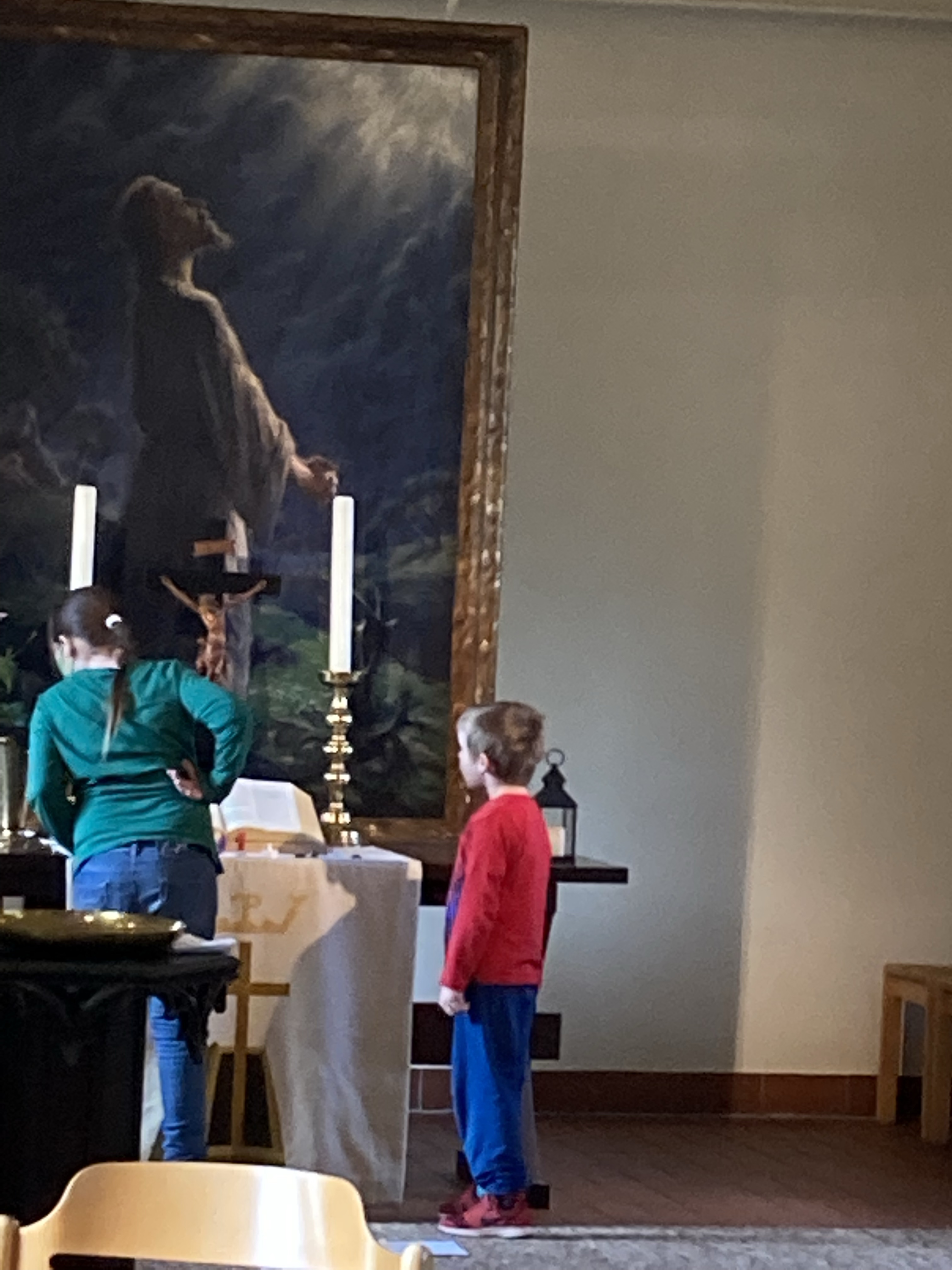 [Im Kindergottesdienst. KM:] „Moment, ich muss nur noch den Regenbogen fertig malen auf meiner Hand!“