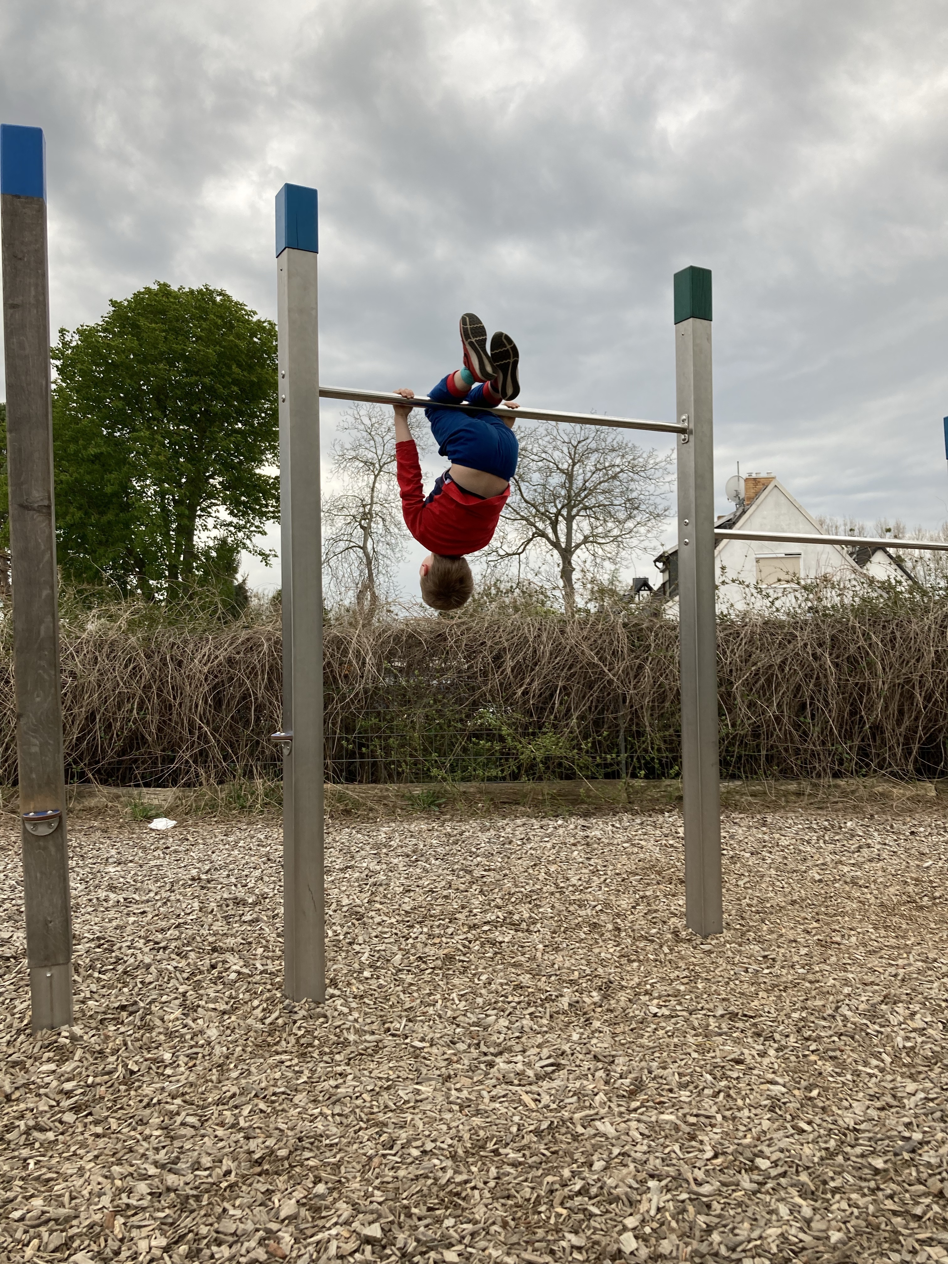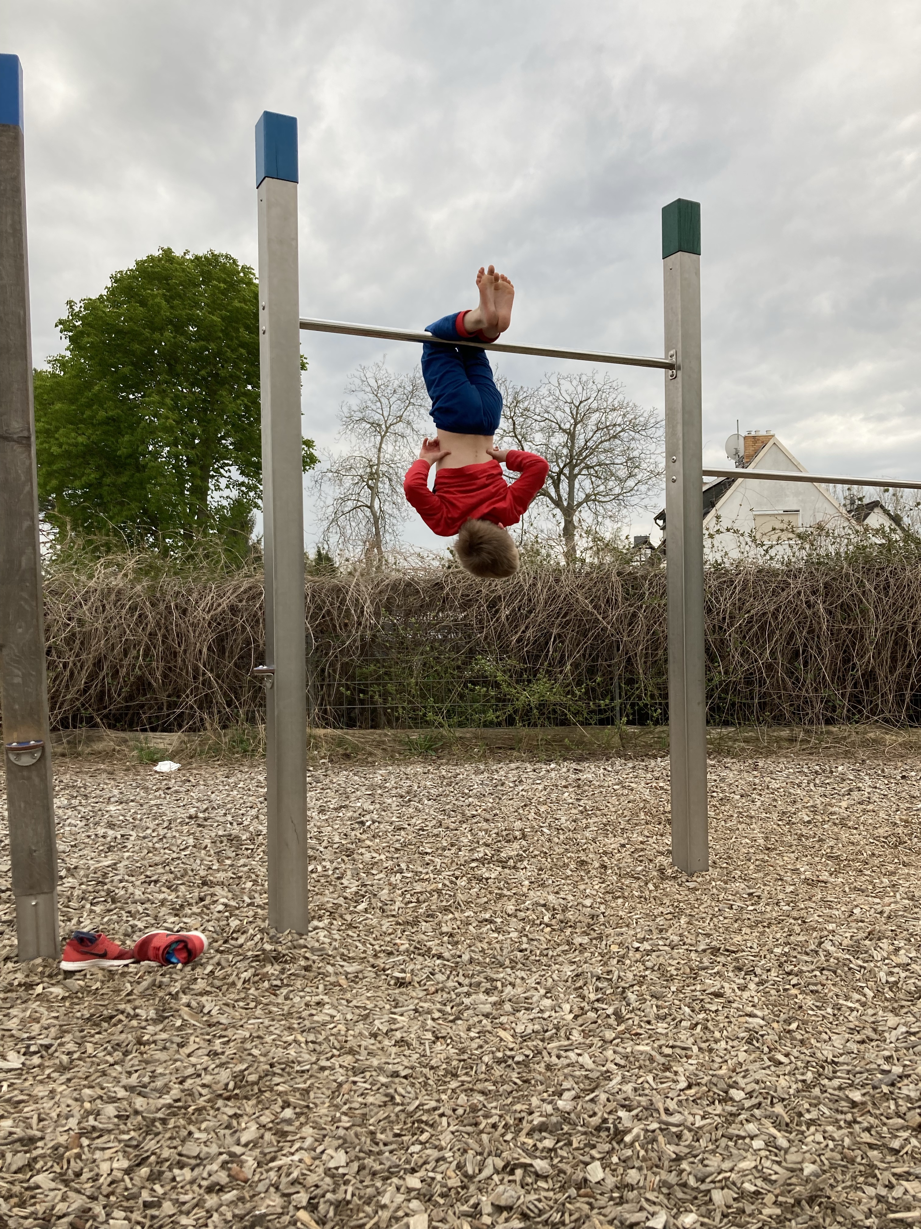 [KJ:] „Mama? Gehst Du mit mir noch auf den Spielplatz? Ich bin nämlich der weltbeste Turner!“