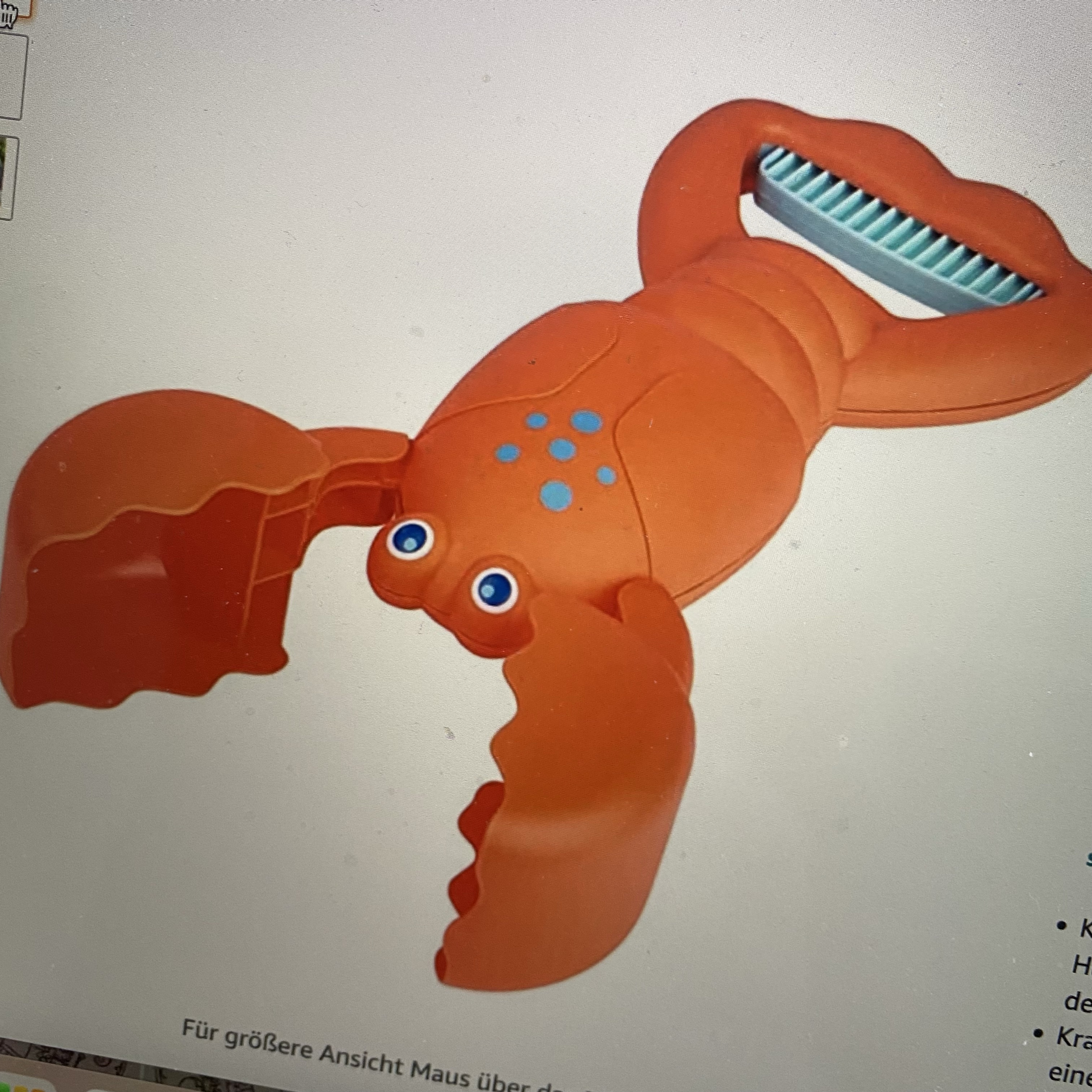 [kneteeis:] „Ha! Ich habe im Internet den Sandgreifhummer gefunden, den die Nachbarn in ihrer Kinderkarre haben! Guck‘ mal, den gibt es auch mit kleinen Meerwesen dabei, die man greifen kann! Welchen wollen wir haben? Den in orange? Oder den in rot mit den Wesen?“