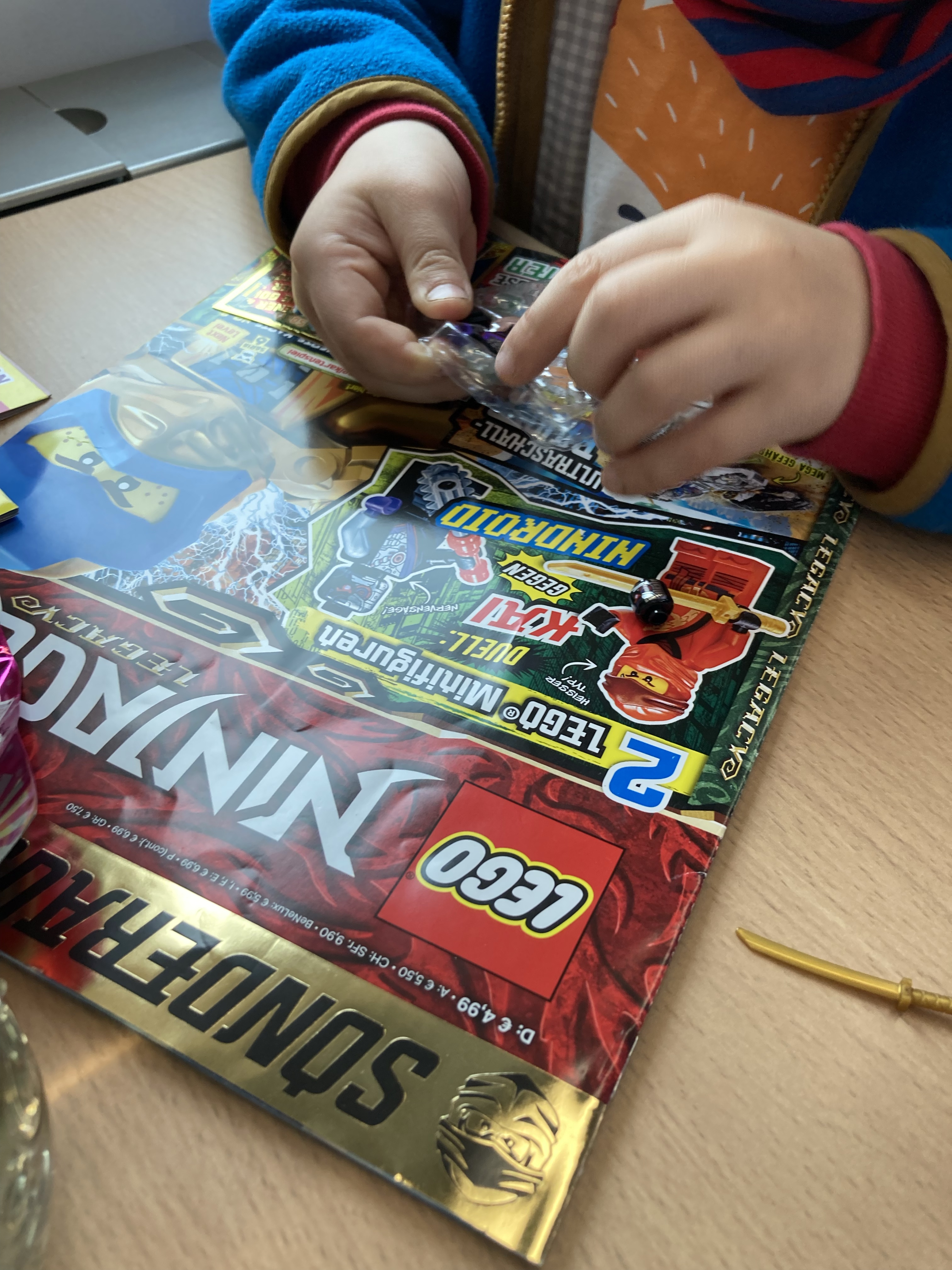 [KJ:] „Vorgestern habe ich mich auf gestern gefreut und gestern auf heute! Jetzt fahren wir zum großen Jungen und ich spiele die ganze Zeit mit der Löwenritterburg!“