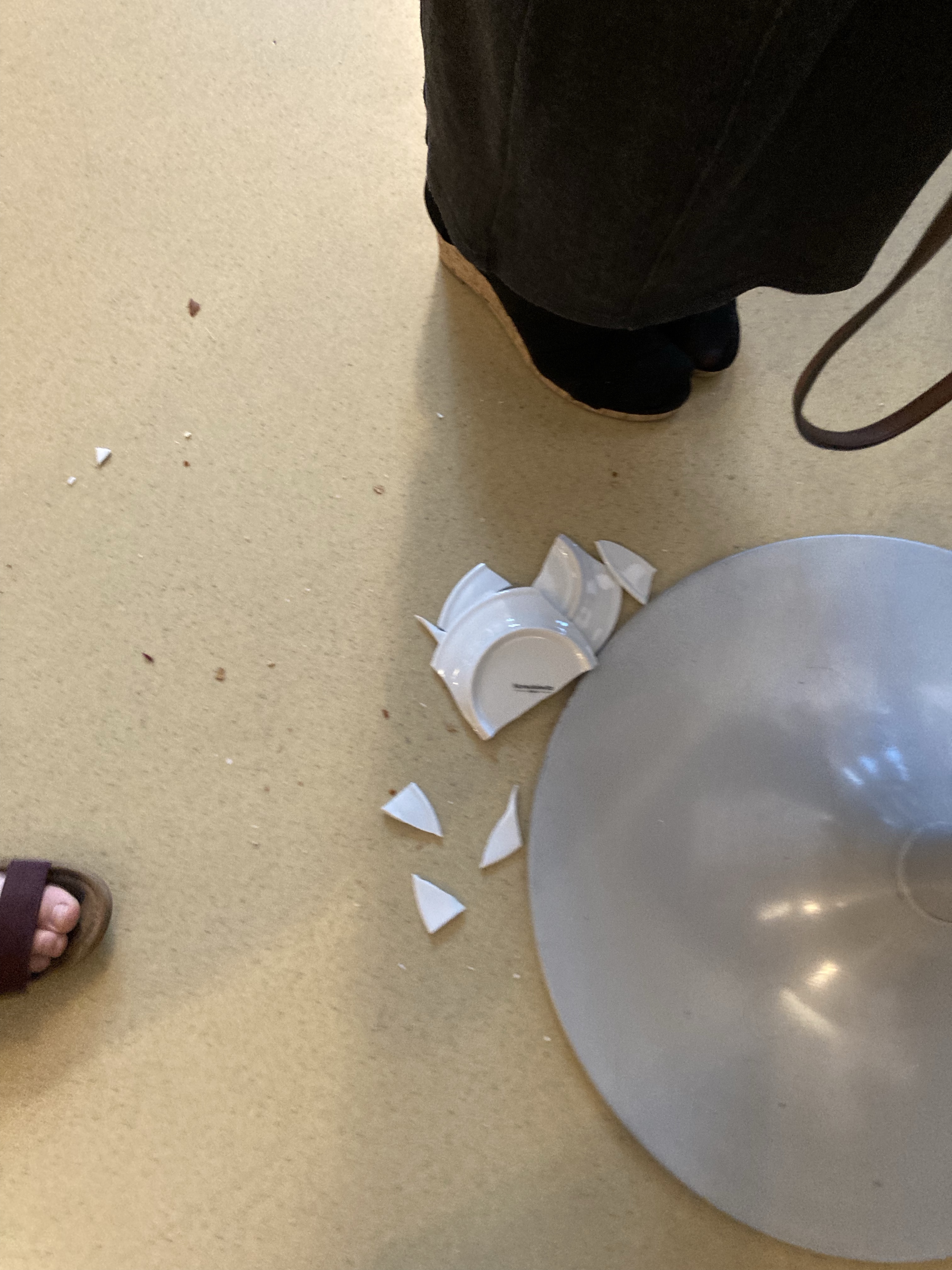 [Alle:] „Huch?! Oh nein! Jetzt ist uns ein Teller runtergefallen!“
