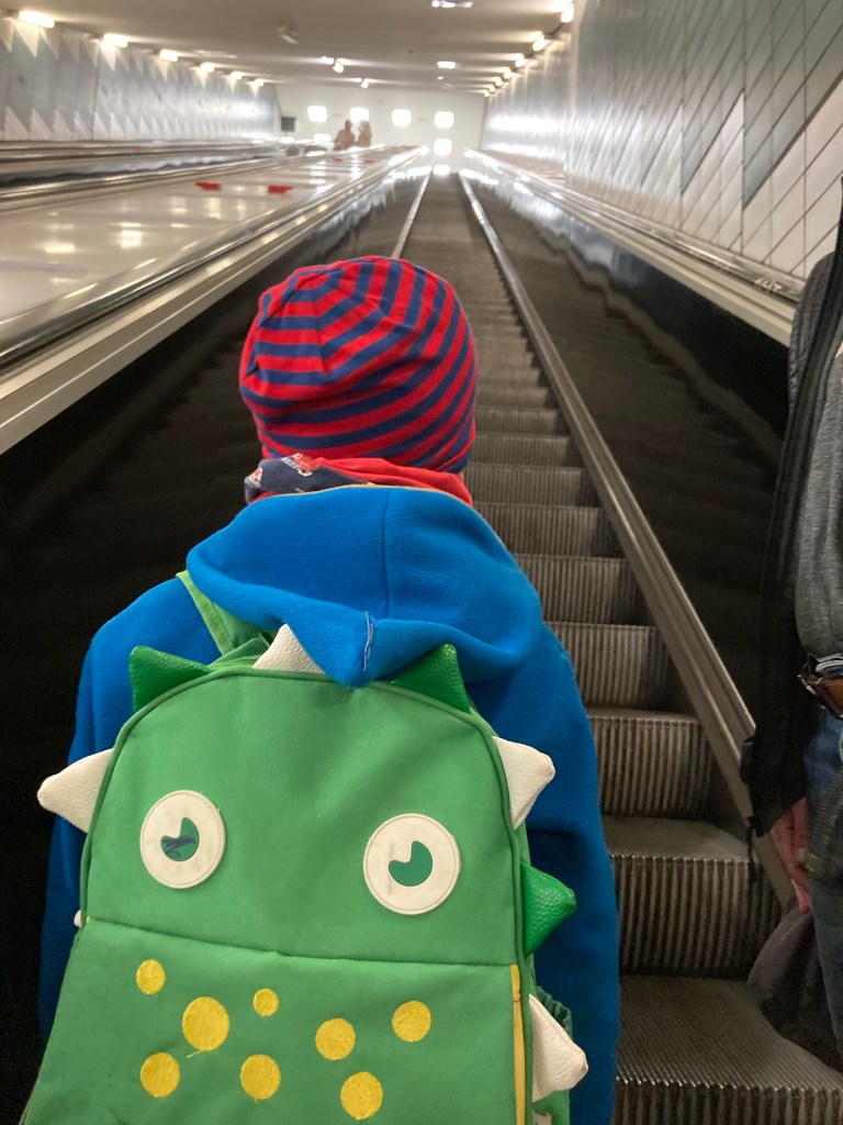 [Auf dem Weg. folienstern:] „Boah, ist die Rolltreppe lang! Ich glaube, hier war ich noch gar nicht.“