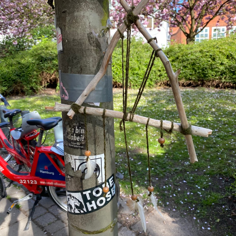 [kneteeis:] „Oh, guck‘ mal: Hier hängt eine Art Totem am Laternenpfahl! Das fotografiere ich mal – das bringt bestimmt Glück!“