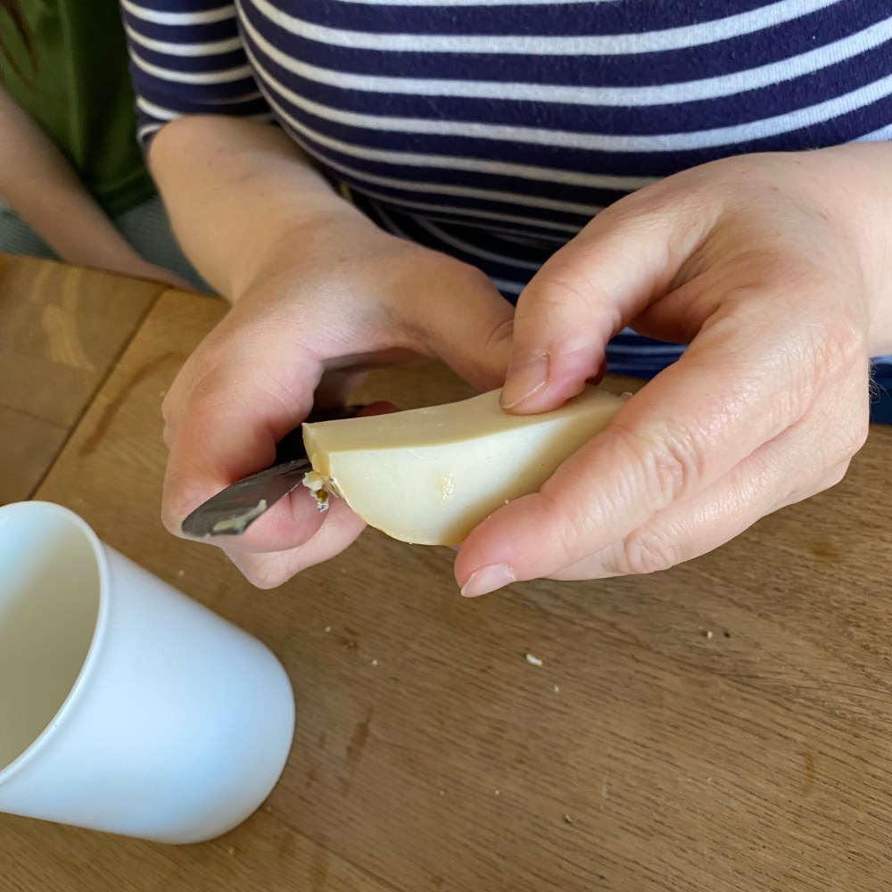 [KM:] „Mami, ich möchte noch ein Stück Käse!“