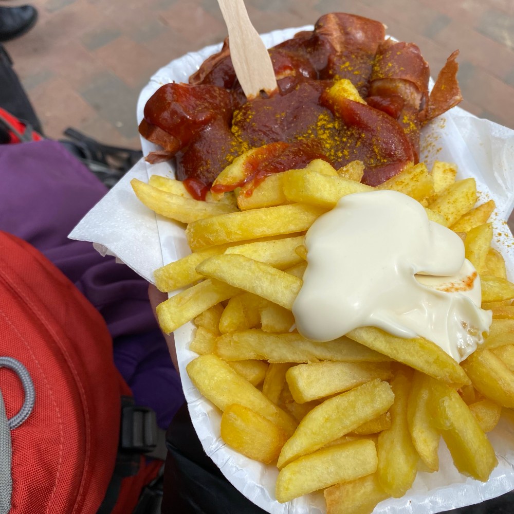 [Kurz darauf. Vater:] „Hm, da ist aber viel Curry dran. Das sind wir aus Berlin gar nicht gewöhnt!“