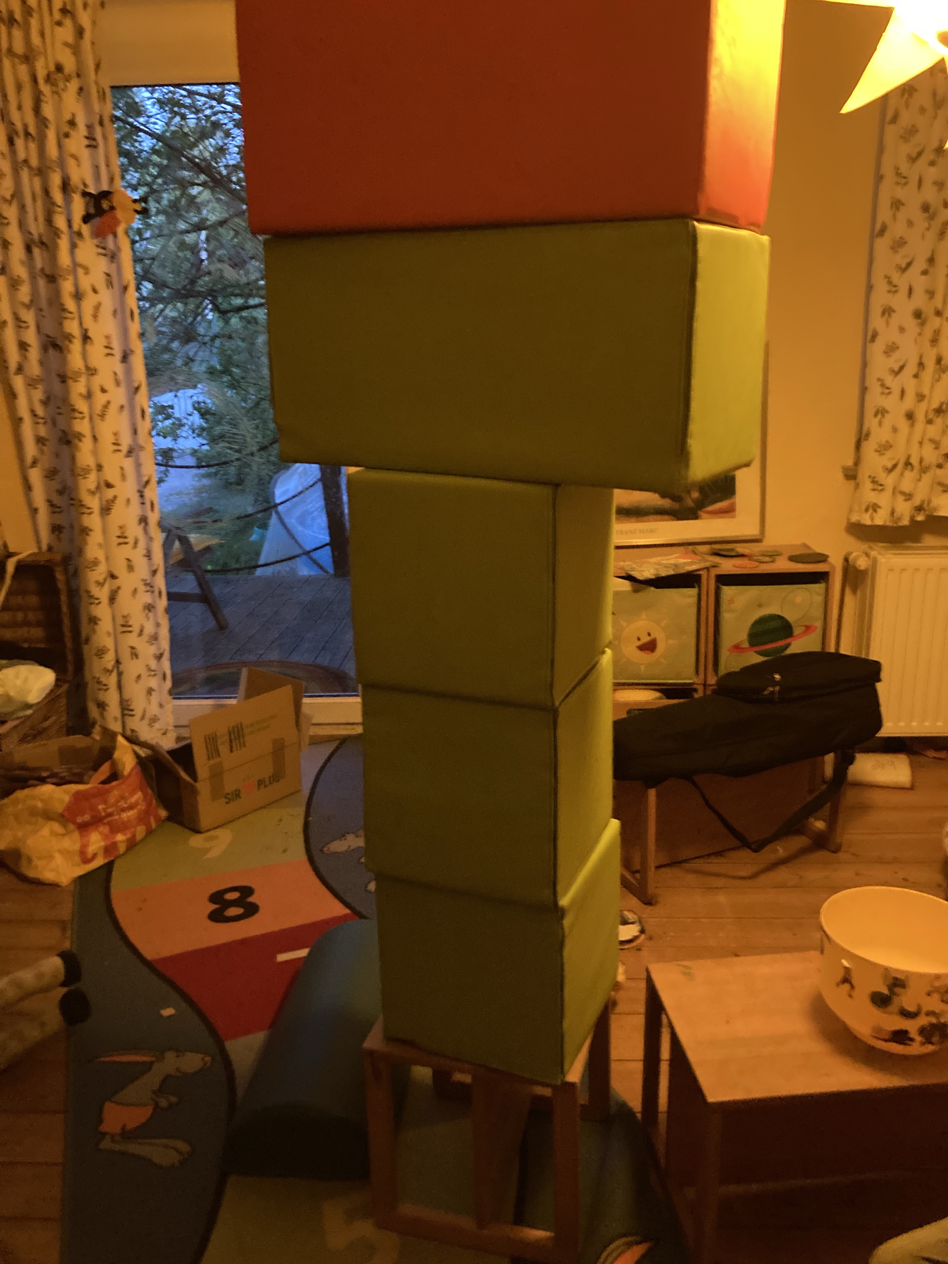 [KJ:] „Mama, kommst Du? Ich habe was Hohes gebaut! Da brauchst Du einen Schutzhelm.“