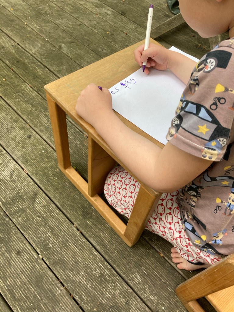 [KJ:] „Jetzt schreibe ich eine Geschichte aus meinem neuen Wimmelbuch. Über das Kirschmonster.“