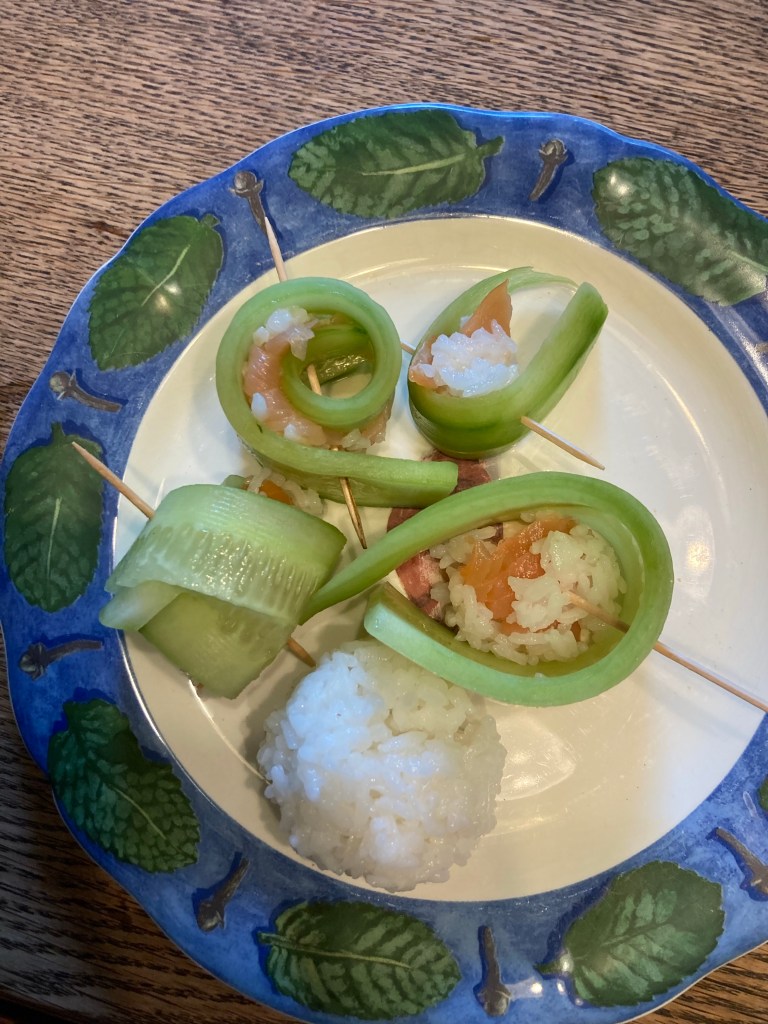 [folienstern:] „Das Gurkensushi sieht gut aus!“