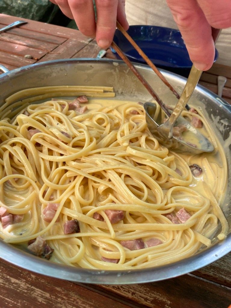 [Vater:] „Das war auch ein Spezial-Carbonara-Rezept!“