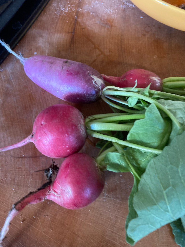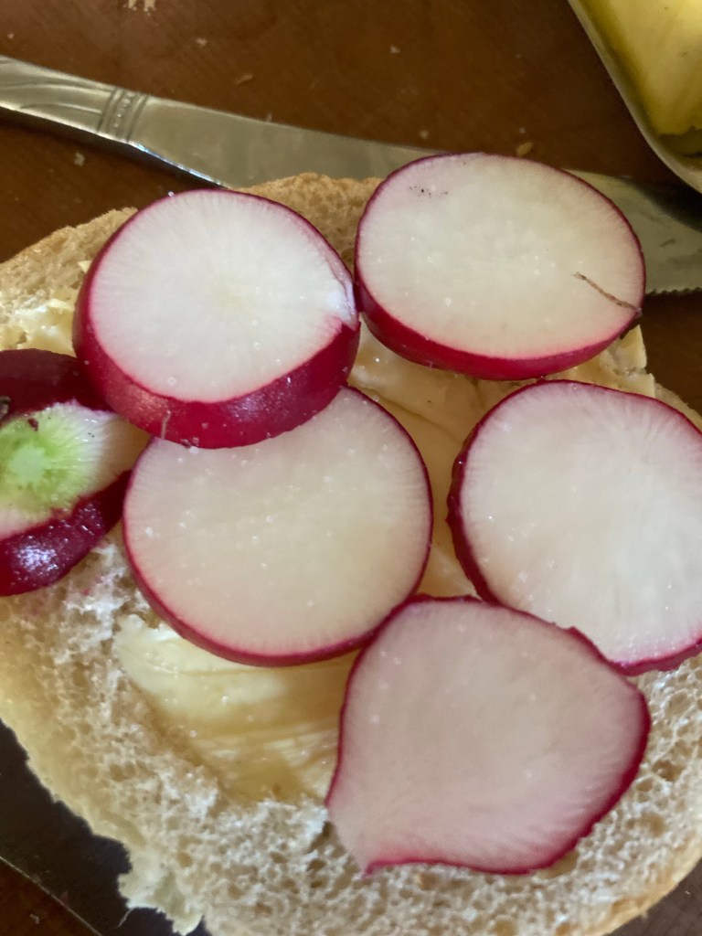 [folienstern:] „Hm, noch nicht ganz. Aber guck mal, da sind Radieschen!“