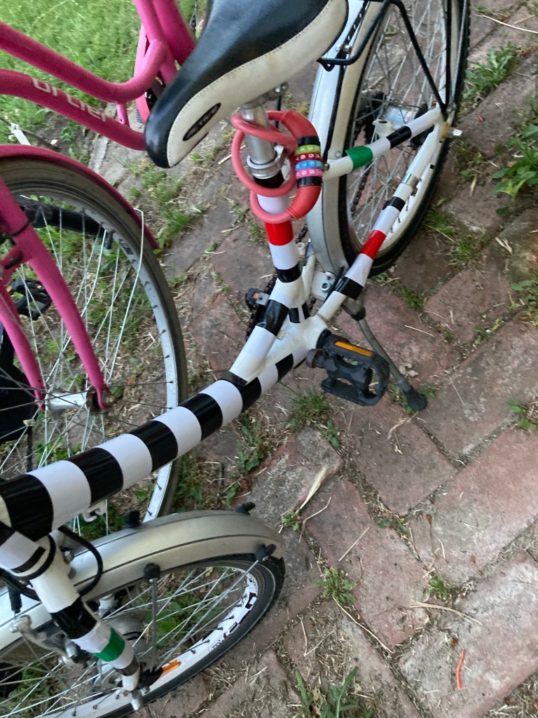 [Etwas später. KJ:] „Cool, das hat ja nicht nur nur einen grünen Streifen, sondern mehrere! Und der Sattel ist schon wie ein Zebra!“