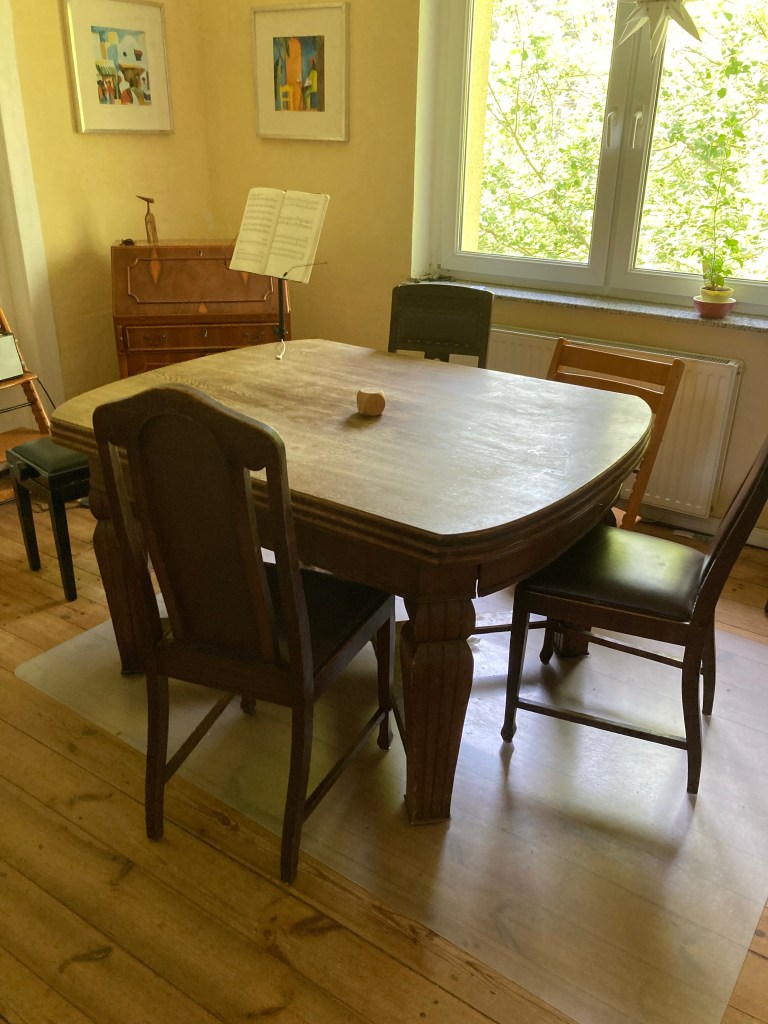 [Berlin. Freitag. folienstern:] „Ui, heute sollen die neuen Esszimmermöbel ankommen! Dann mache ich mal ein nostalgisches Vorher-Foto!“