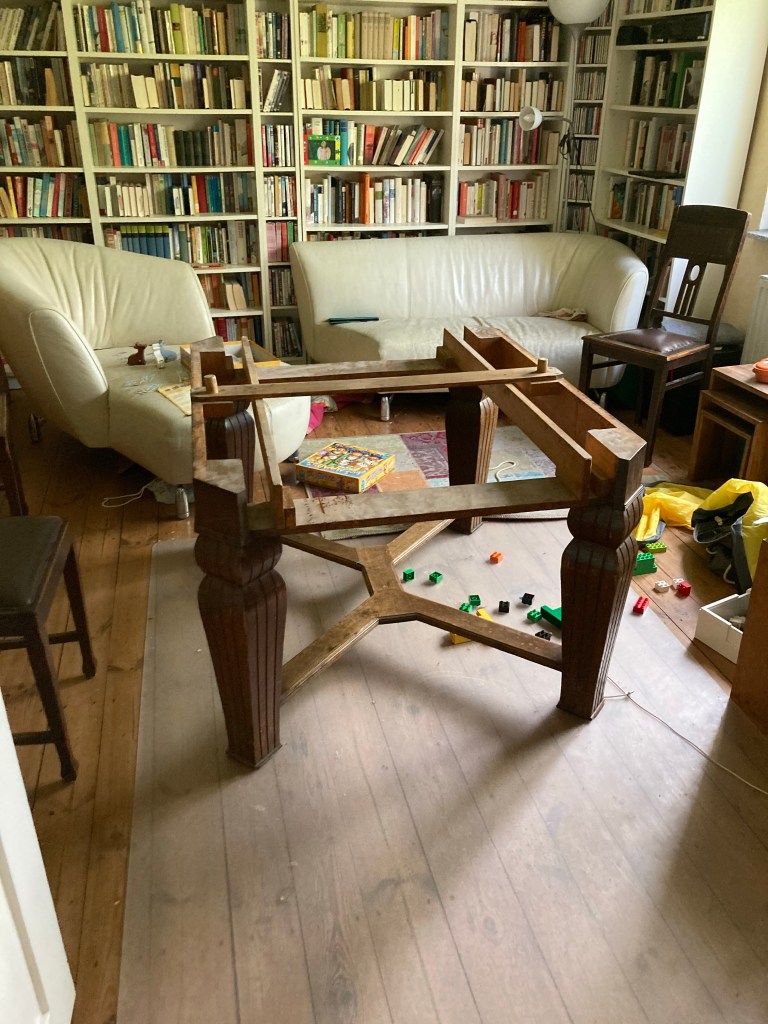 [Berlin. Sonntagmorgen. folienstern:] „Lass uns mal den Tisch in der Werkstatt lagern bis das Gartenhaus kommt, in das der reinsoll.“