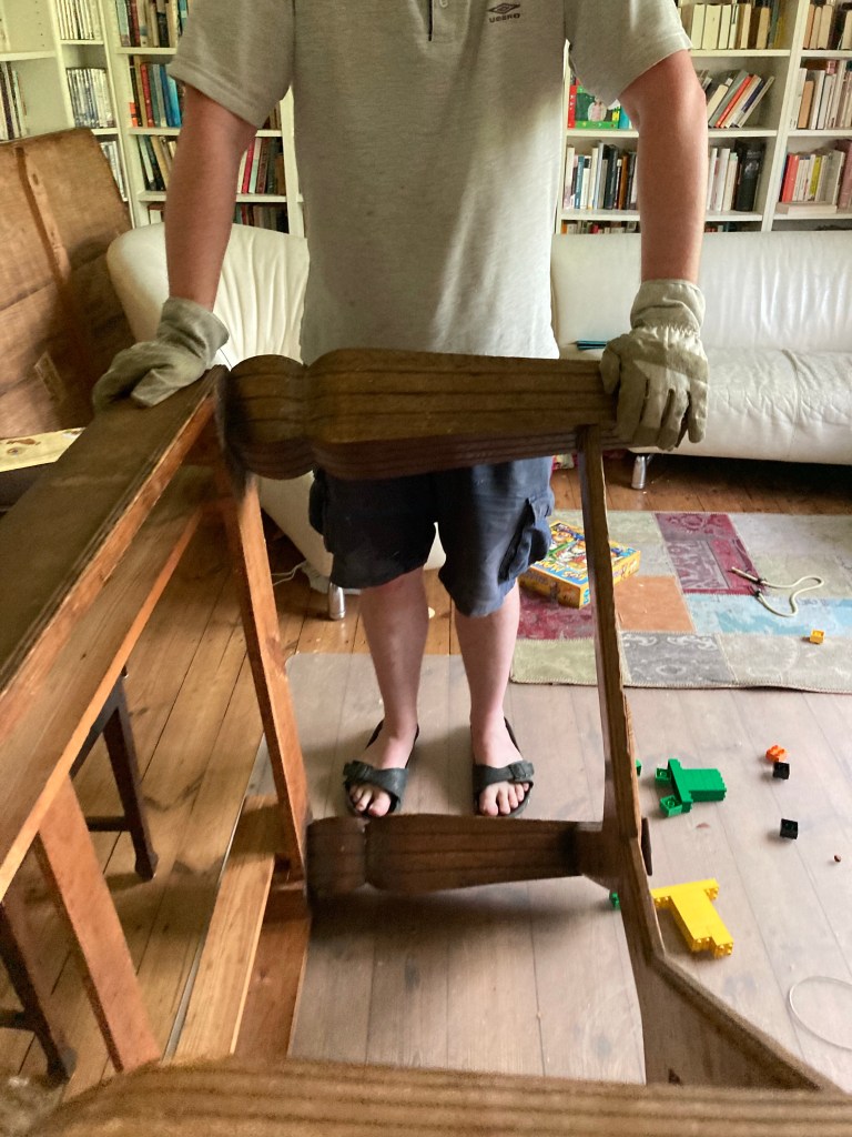 [Berlin. folienstern:] „Lass uns jetzt mal noch das Sofa runterbringen, damit morgen alles bereit ist für die neuen Möbel vom großen Mädchen und dann fahr ich mal zu den Offenen Gärten!“