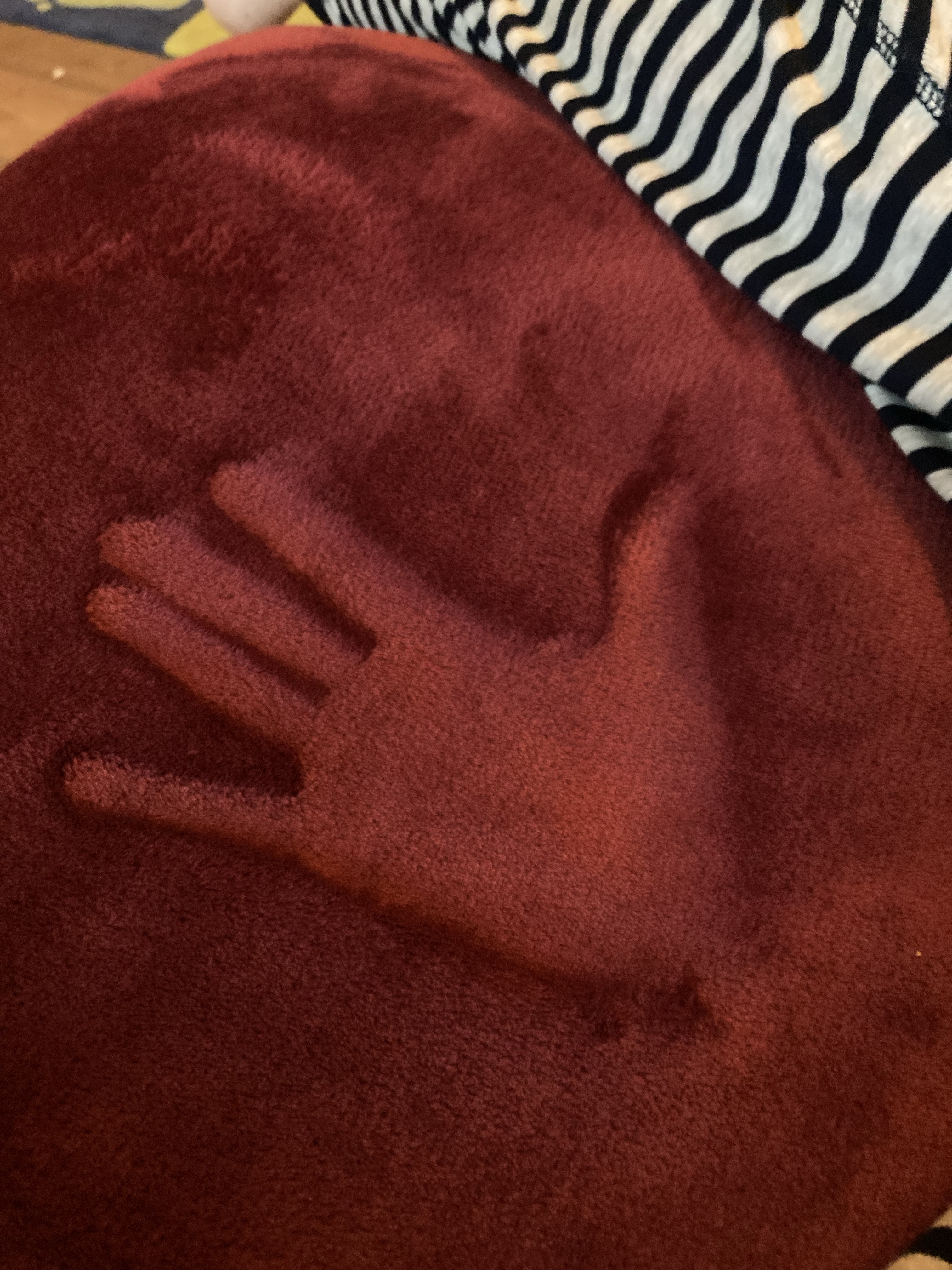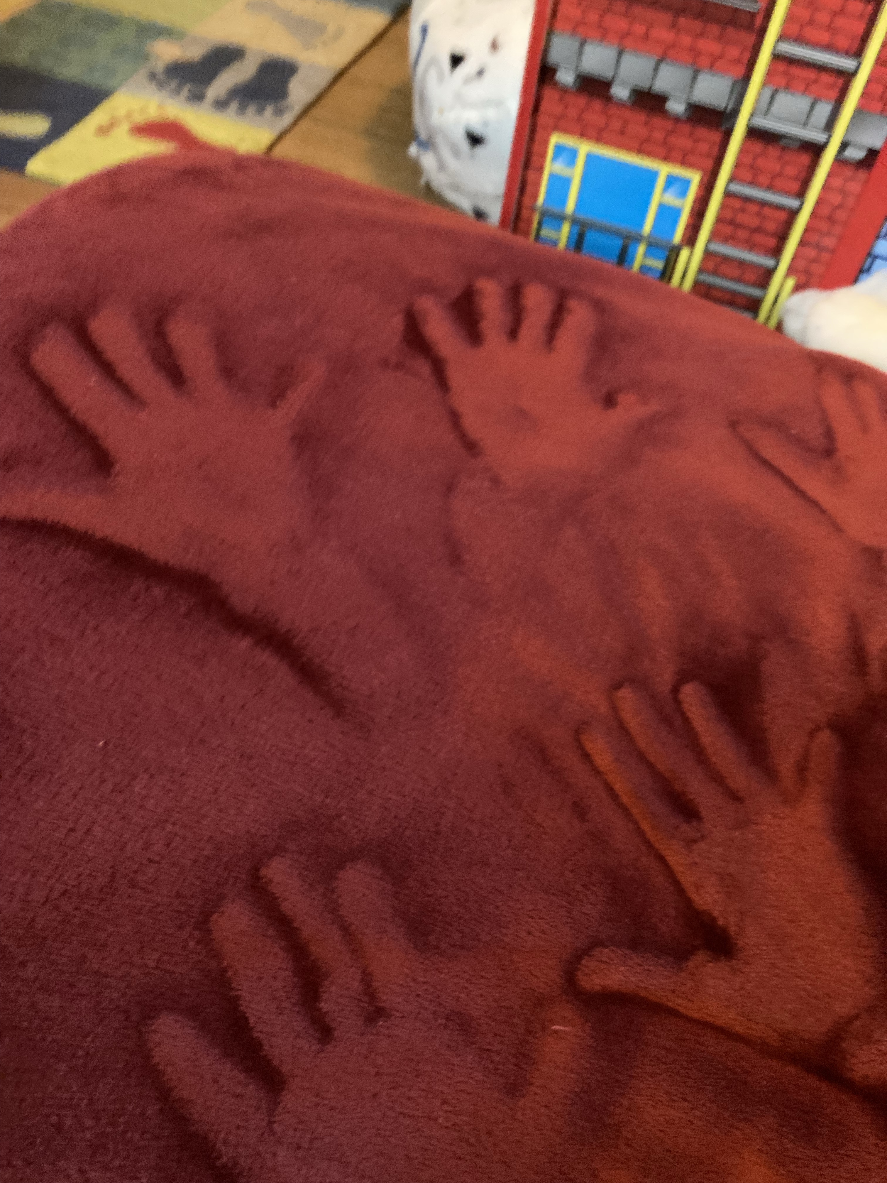 [KM:] „Und man kann auf der Decke Muster machen! Guck mal!“