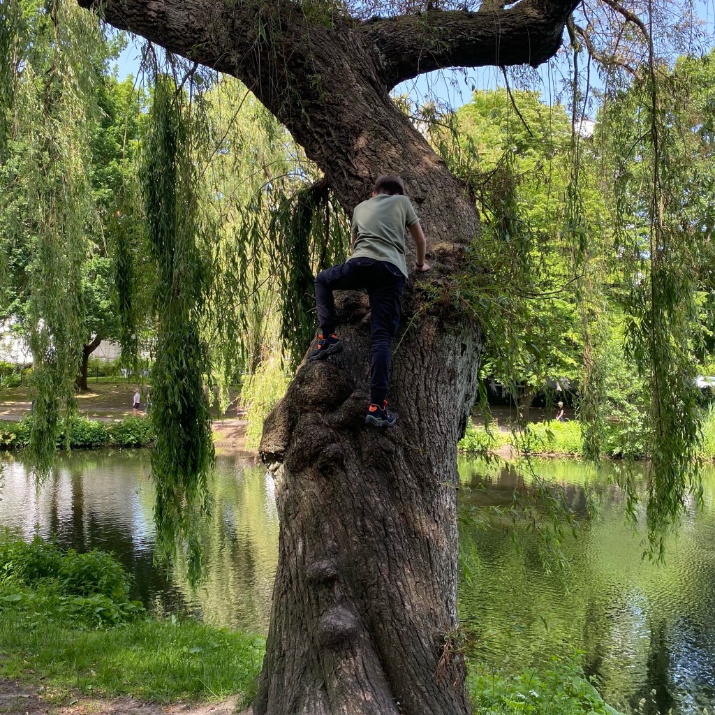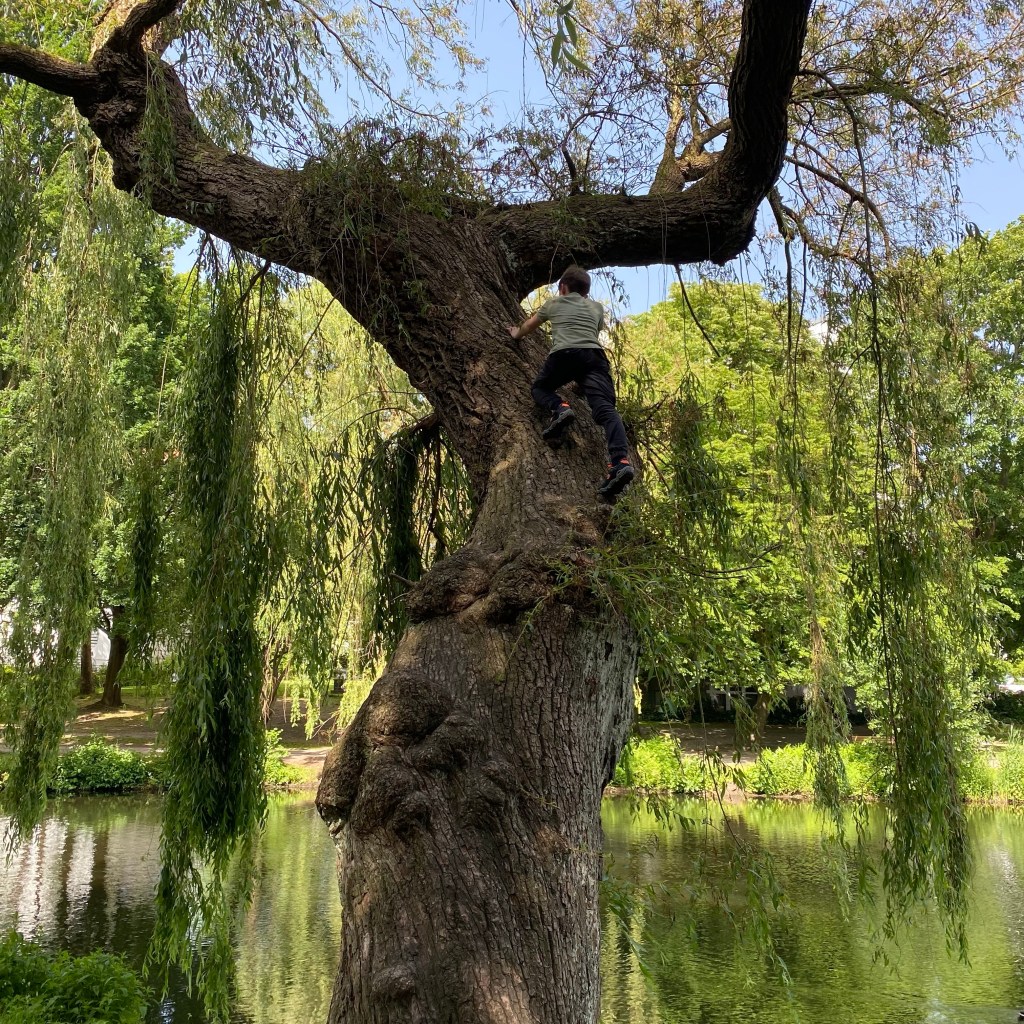 [GJ:] „Weißt Du was? Jetzt gehen wir ein Eis kaufen, und dann zeige ich Dir den Baum im Park, auf den ich letztes Wochenende geklettert bin.“