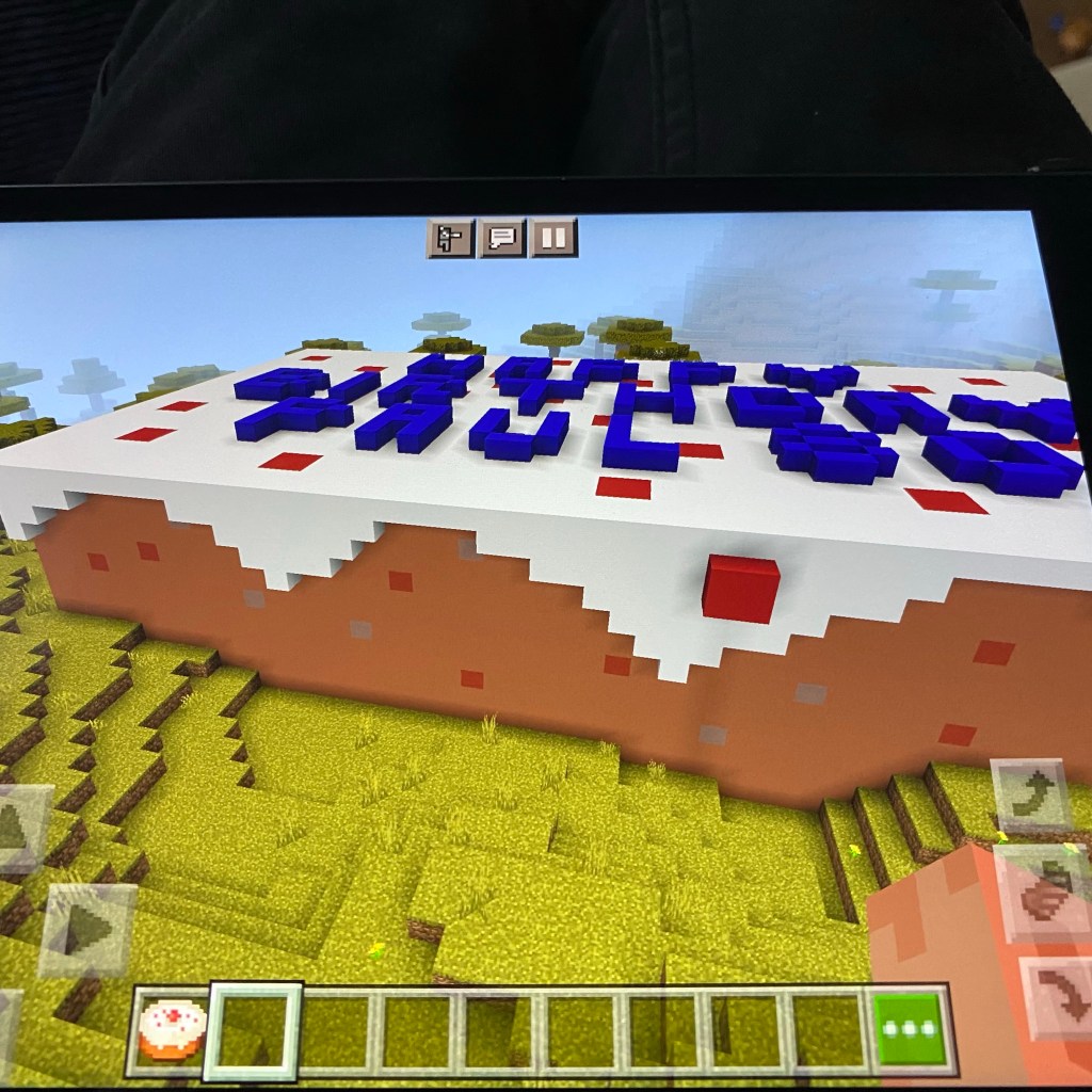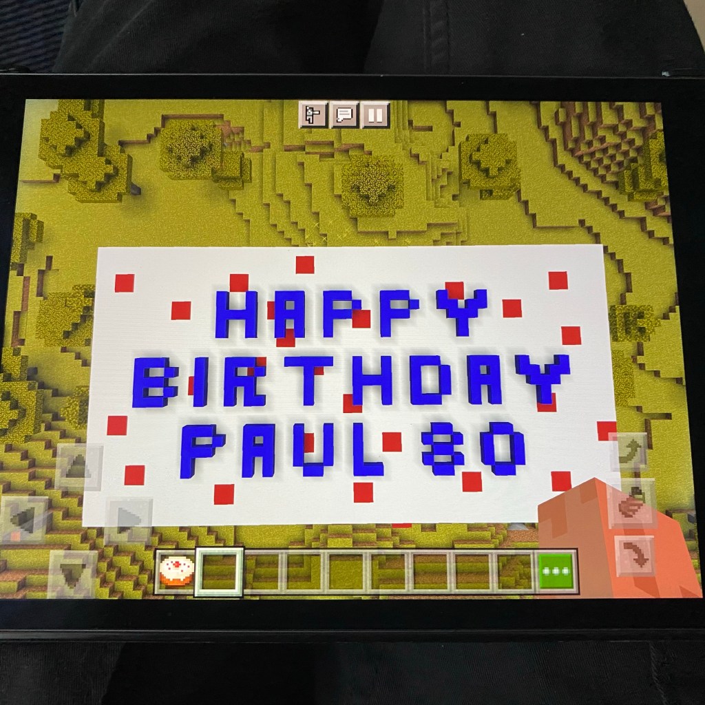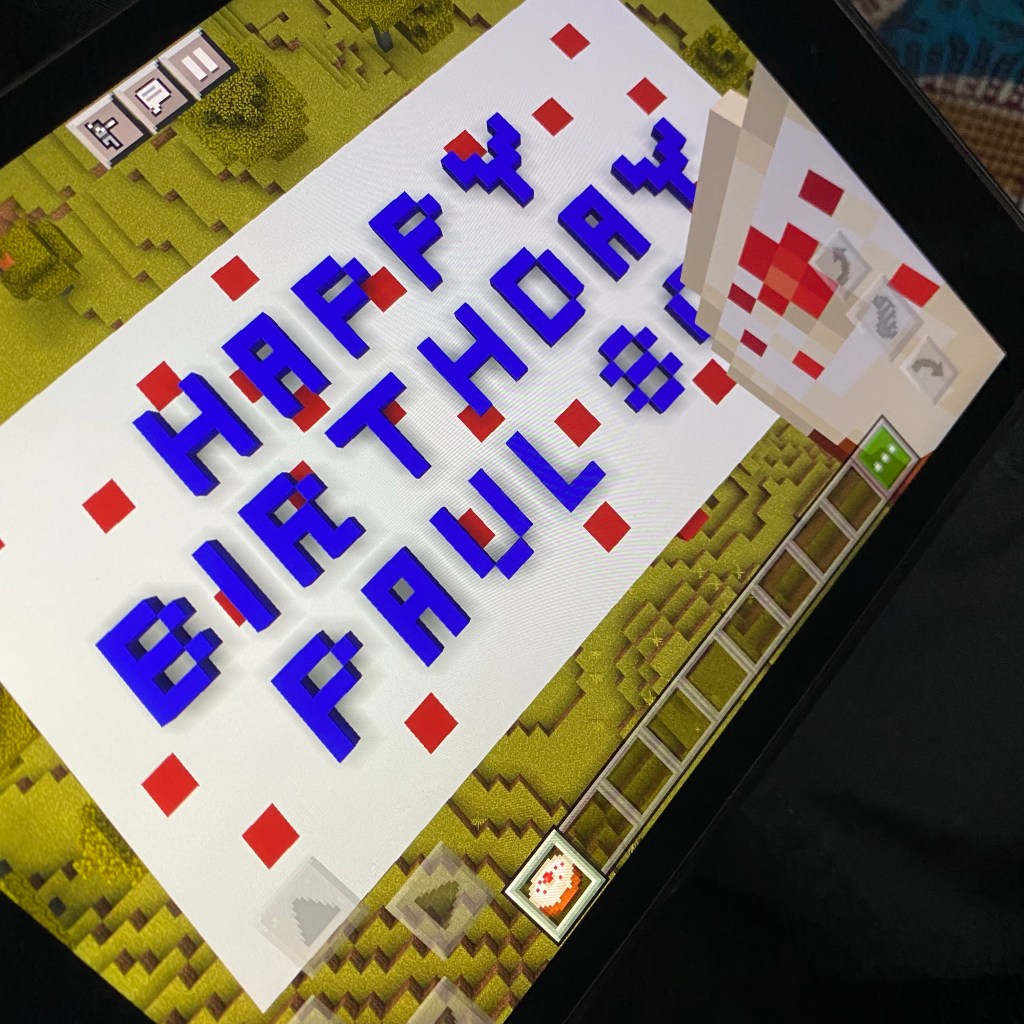 [GJ:] „Nein. Ich kann noch nicht. Ich baue noch in Minecraft eine Geburtstagstorte für Paul McCartney!“
