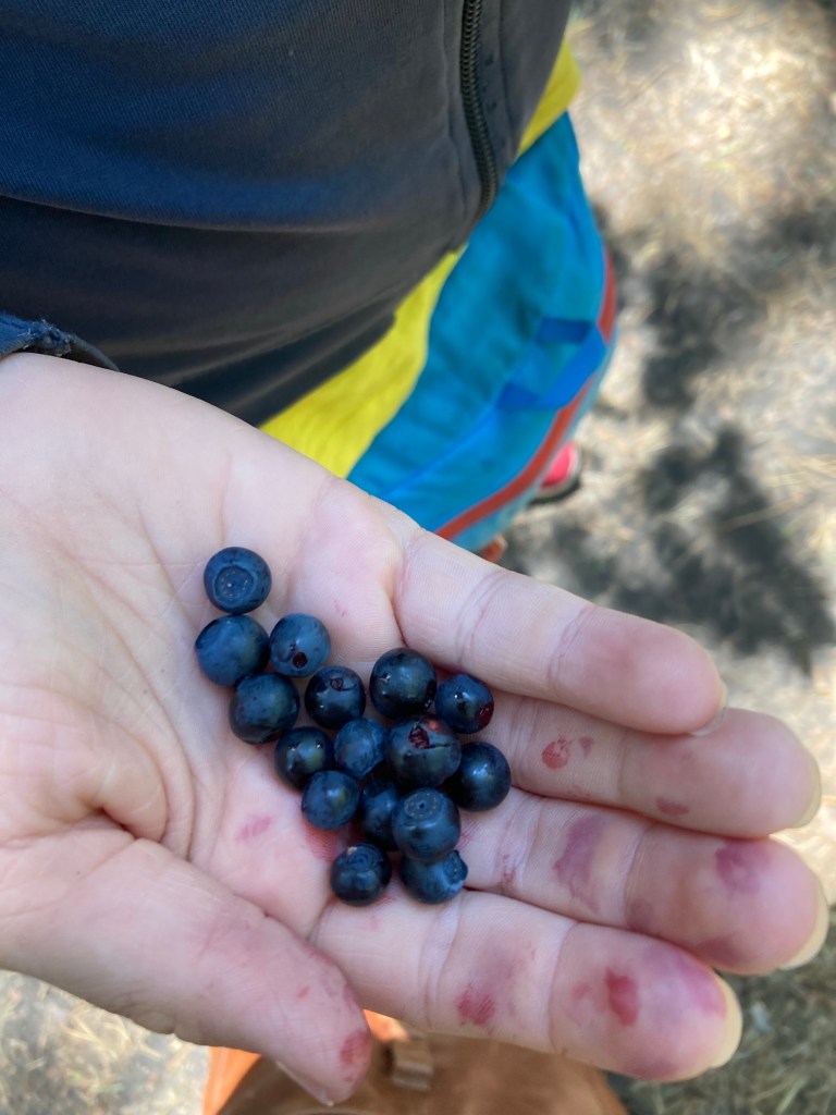 [folienstern:] „Guck‘ mal, hier sind ganz viele Heidelbeeren!“
