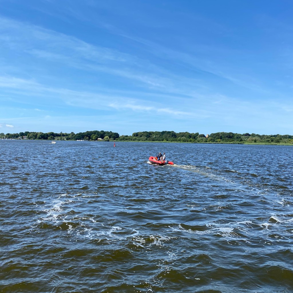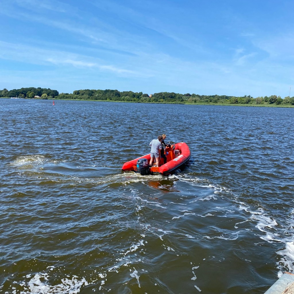 [Etwas später. GJ:] „Da kommt Papa mit dem Boot!“