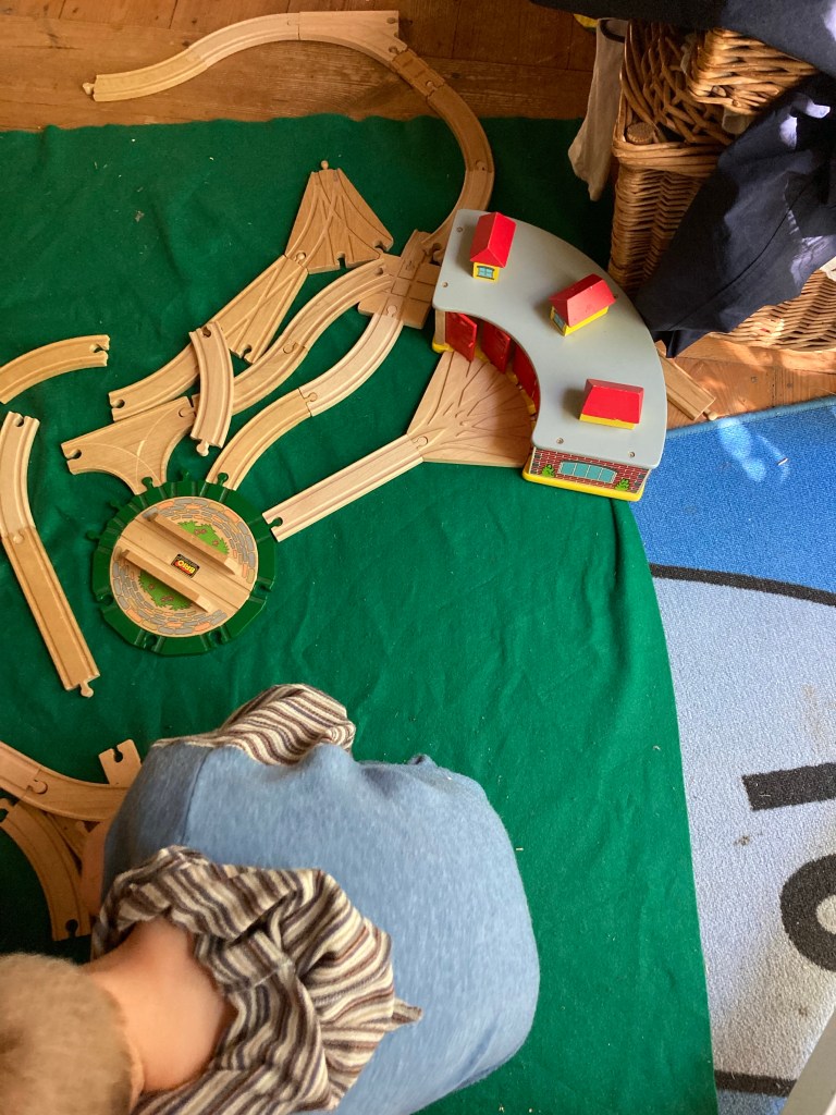 [KJ:] „Guck mal, Mama! Ich hab meinen Lokschuppen aufgebaut, den aus Schweden!“