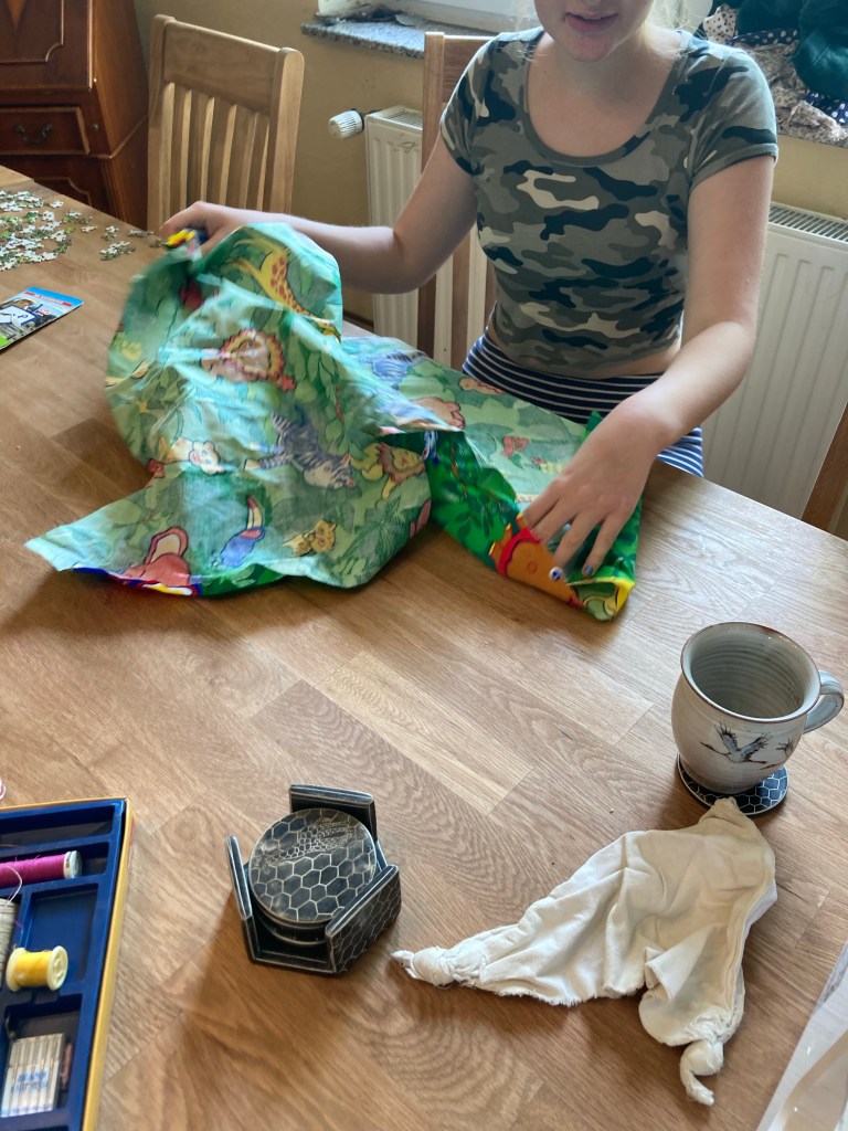 [KJ:] „Nähst Du mir ein T-Shirt? Mit einer Giraffe vorne drauf?“