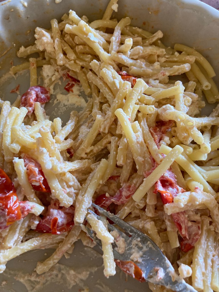 [Berlin. Sonntagmittag. GM:] „Ich mache mal Nudeln mit Feta und Tomate. Hab ich auf Insta gefunden!“