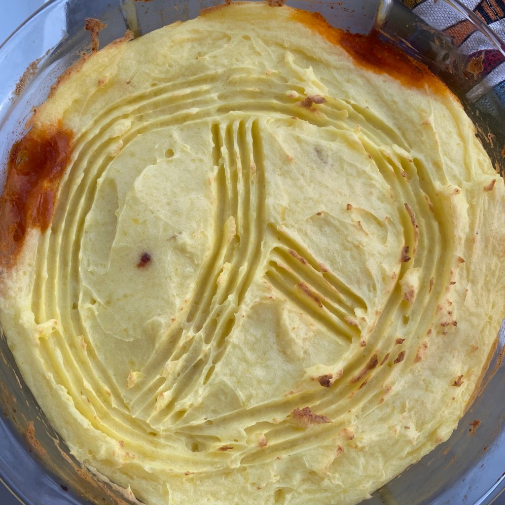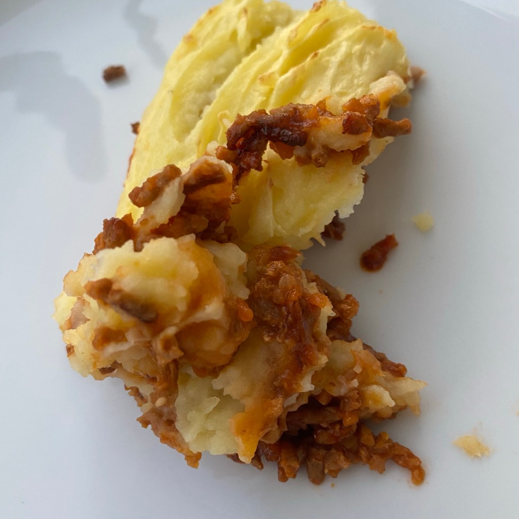 [GJ:] „Machen wir jetzt noch Shepherd’s Pie mit dem veganen Hackfleisch?“