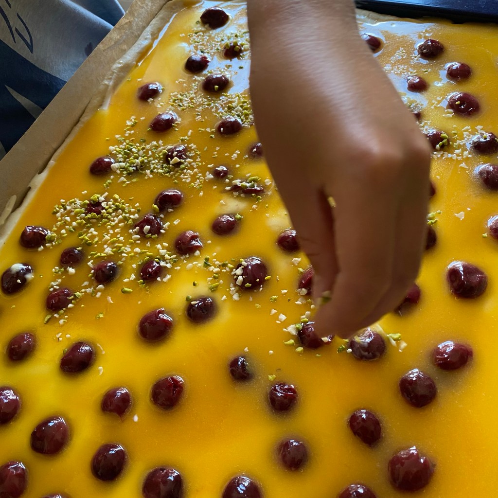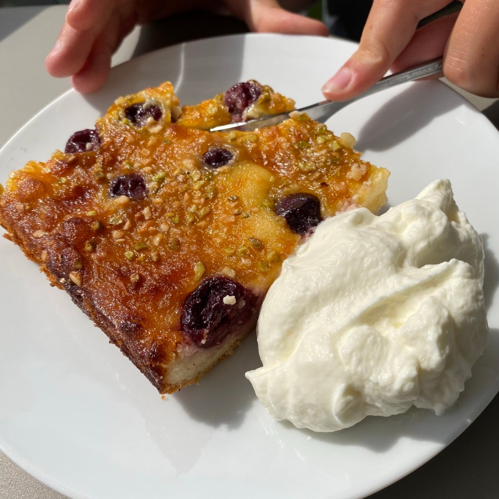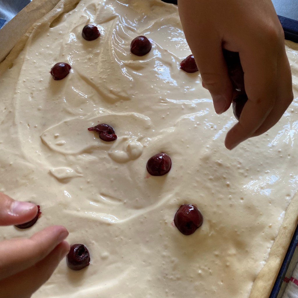[Etwas später. GJ:] „Wir machen Kirschkuchen. Ich gehe noch schnell einkaufen und besorge, was fehlt.“