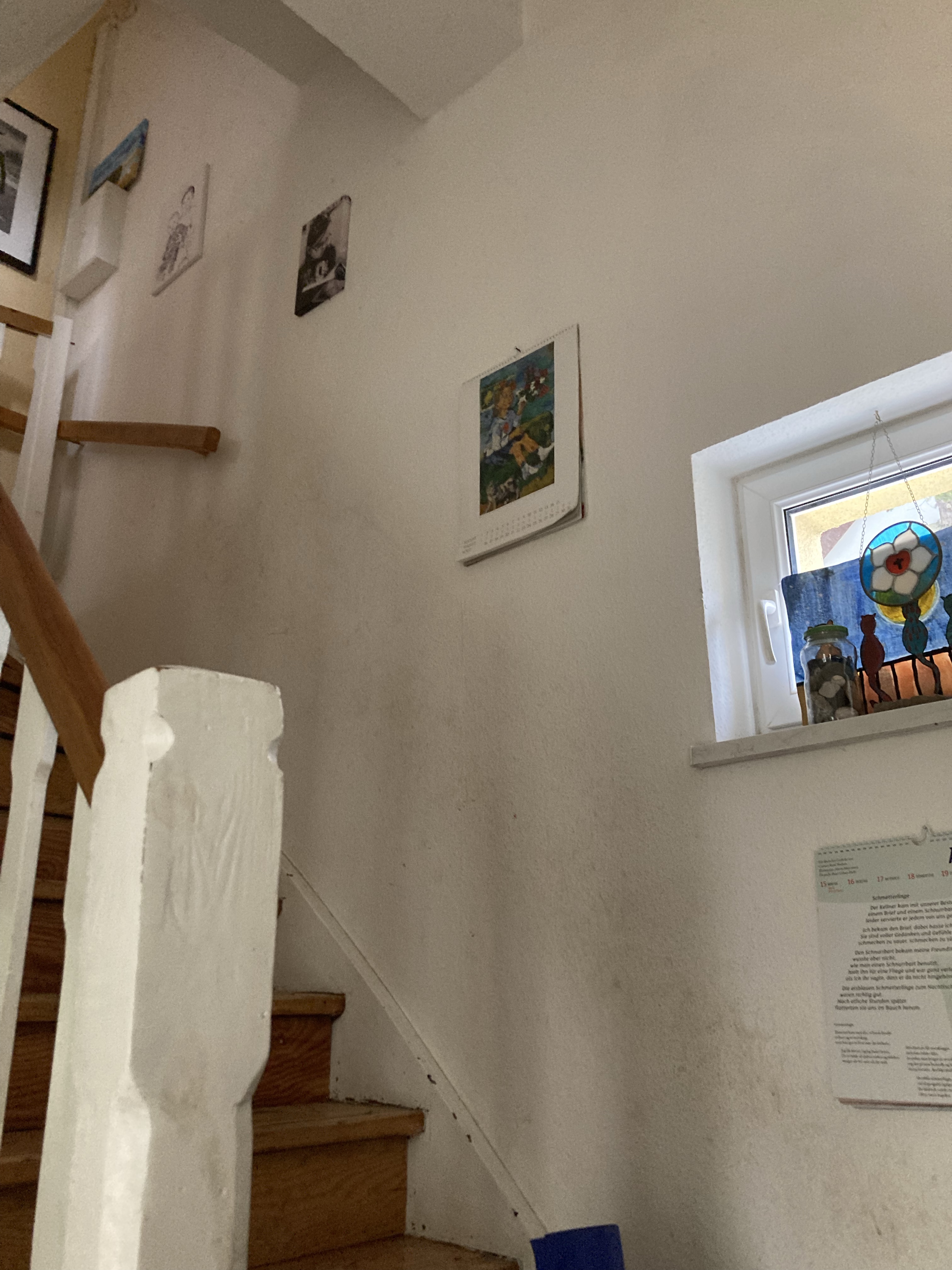 [folienstern:] „Der Flur gefällt mir gut so! Endlich können ein paar von den schönen Bildern da gut Platz finden. Nächste Woche kommt dann noch die Treppe fertig und der Boden.“