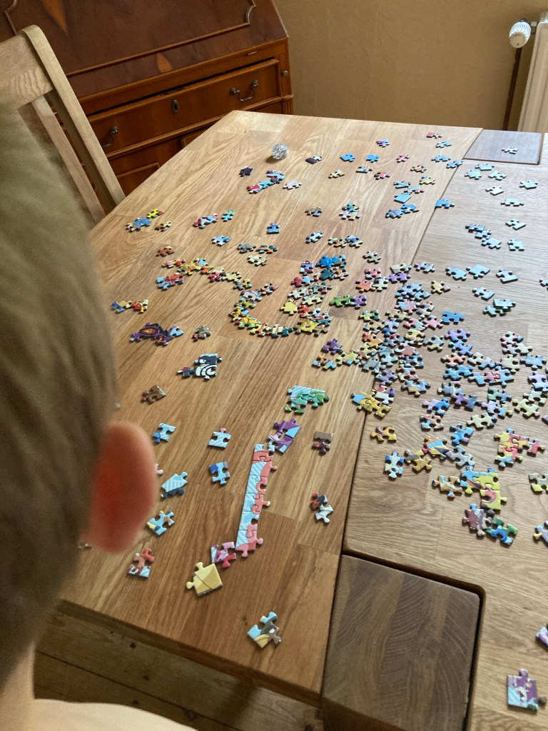 [folienstern, sehr laut:] „Wie jetzt? Ihr habt ein Ravensburger Puzzleteil kaputtgezogen? AAARRRRGGGH!“