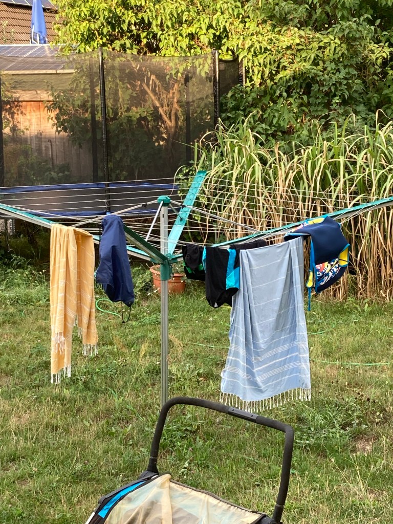 [folienstern:] „Ich dachte, das Schwimmbad ist heute den letzten Tag offen, aber als ich vorhin da war, stand dran, sie haben diese Woche auch noch offen! Wenn Ihr wollt, können wir nochmal gehen.“