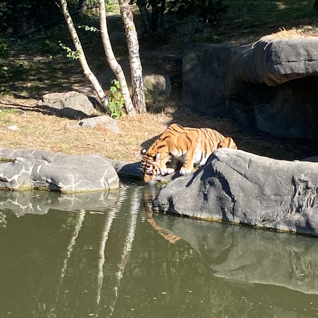 [Kurz darauf. GJ:] „Heute gehen wir zuerst zu den Bären und zum alten Tor, ja? Und dann zu den afrikanischen Tieren und zu den Tigern. Und dann gucken wir mal…“