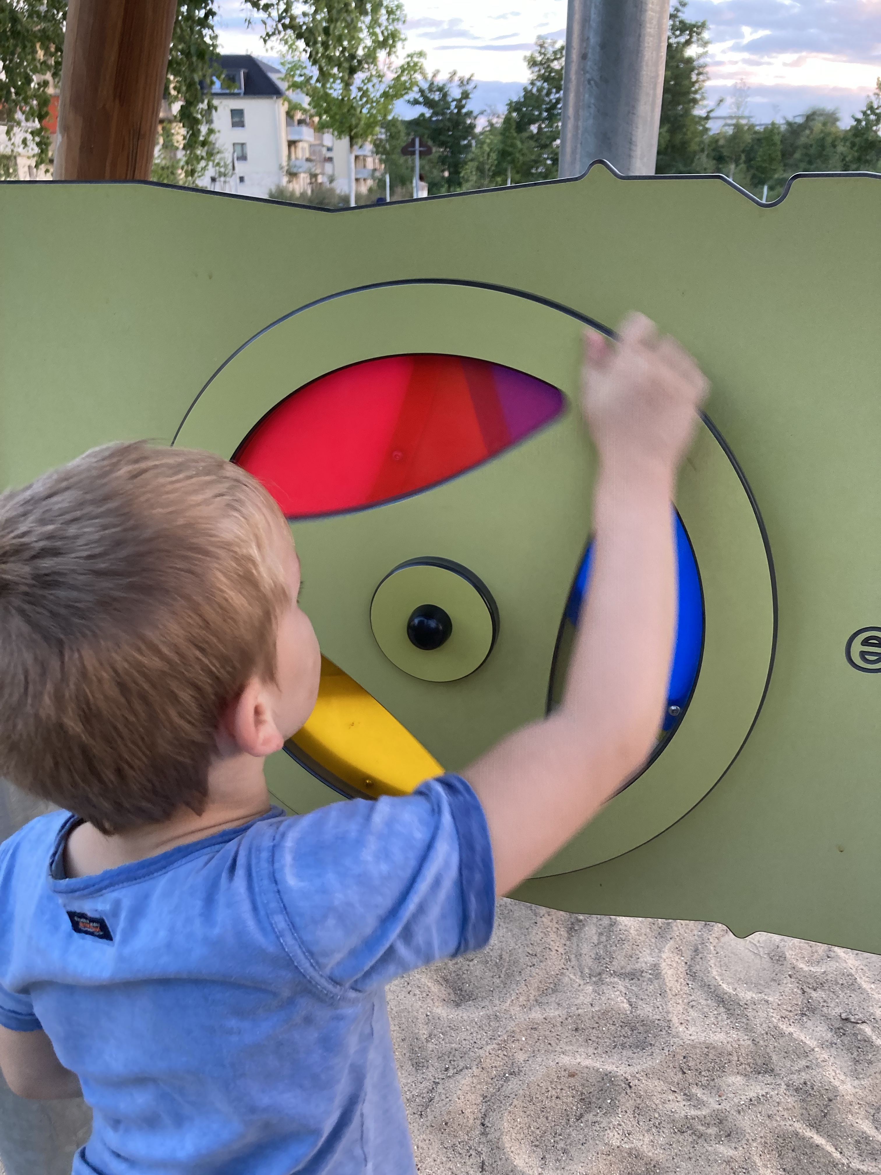 [KJ:] „Guck mal, man kann die Farben mischen, wenn man dreht!“