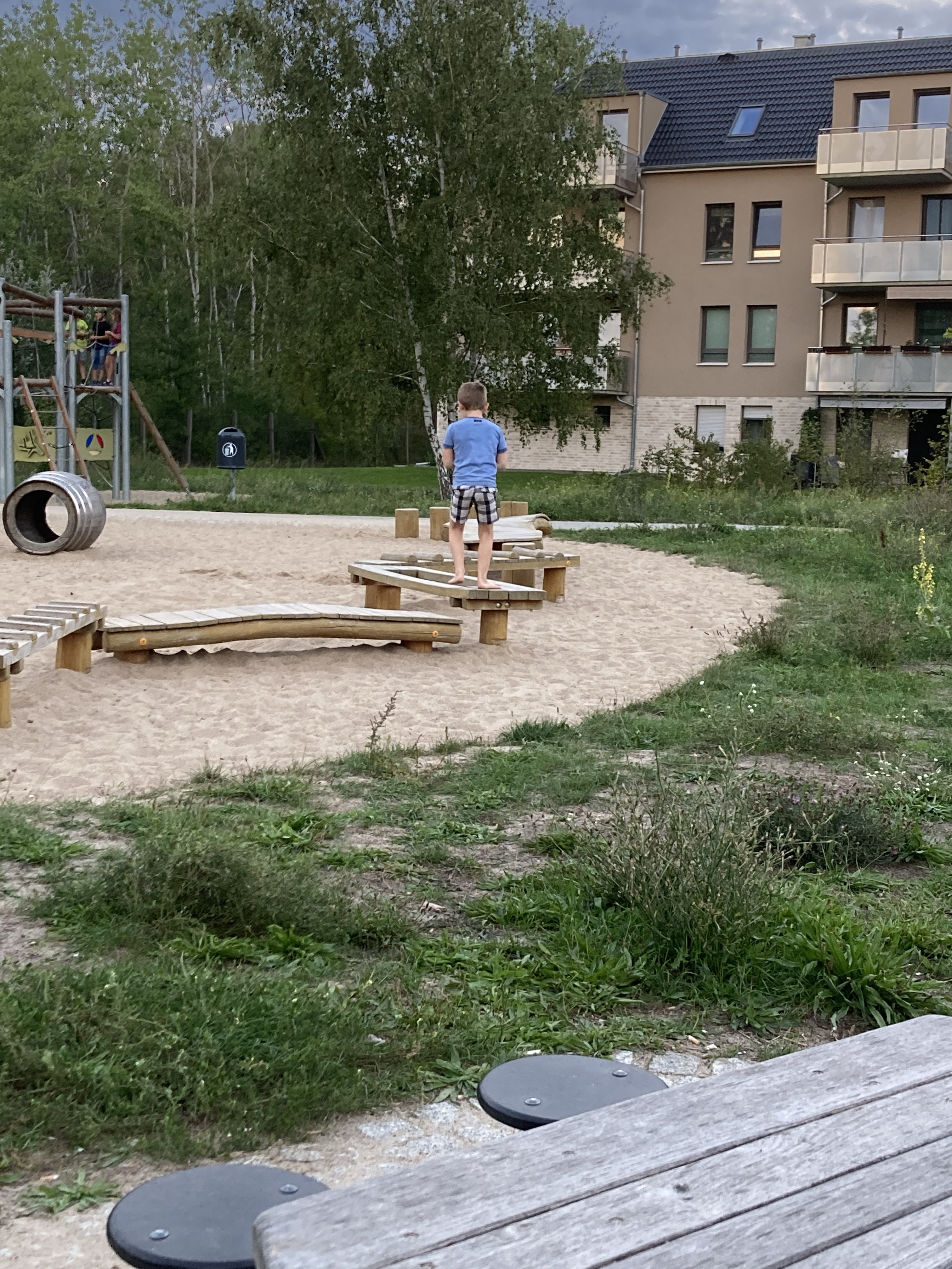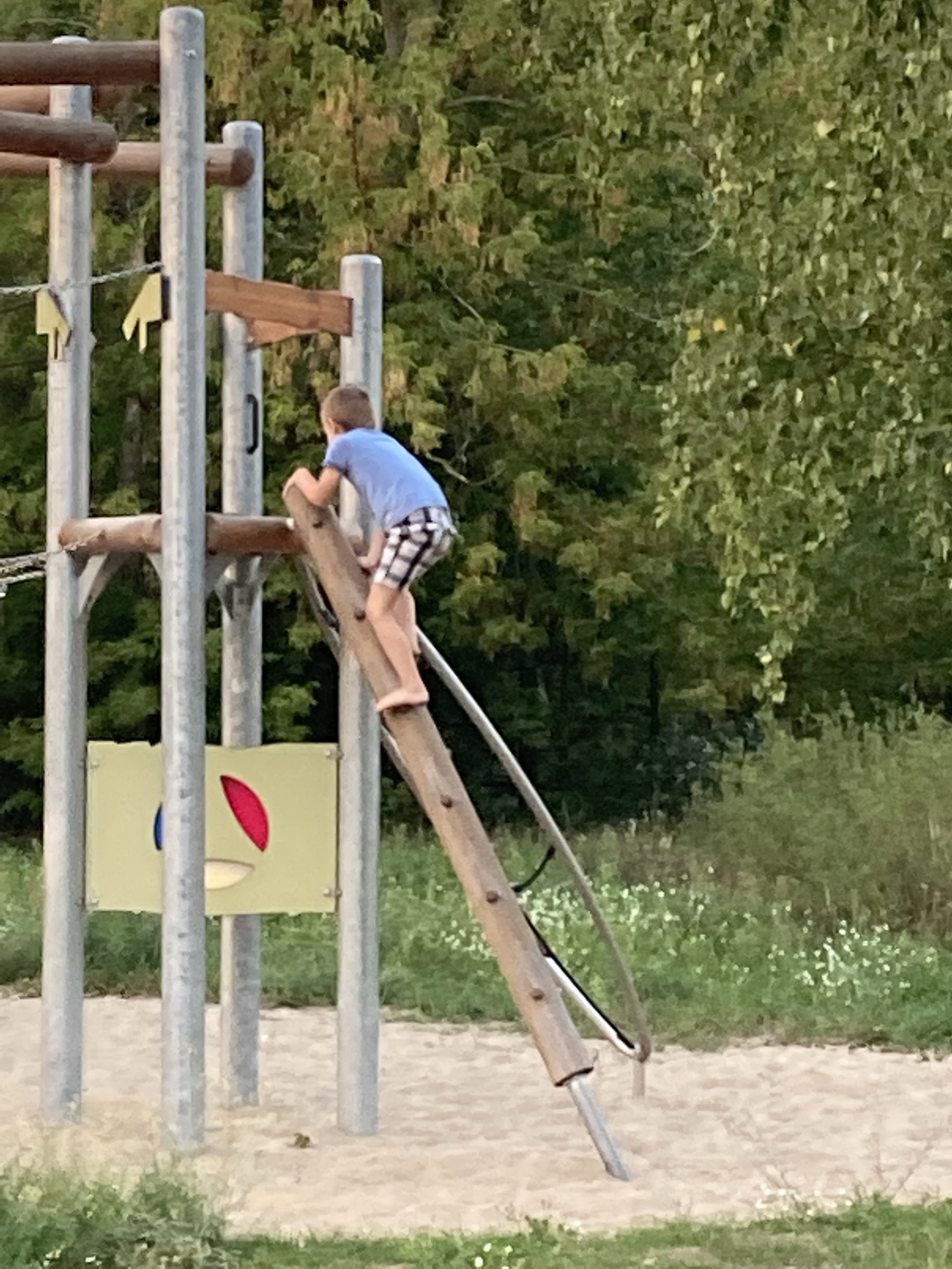 [KJ:] „Ooh, hier ist ja der coole Spielplatz! Können wir hier nochmal halten? Wenn es dunkel wird, habe ich ja meine Leuchterucksack von unseren Freunden!“
