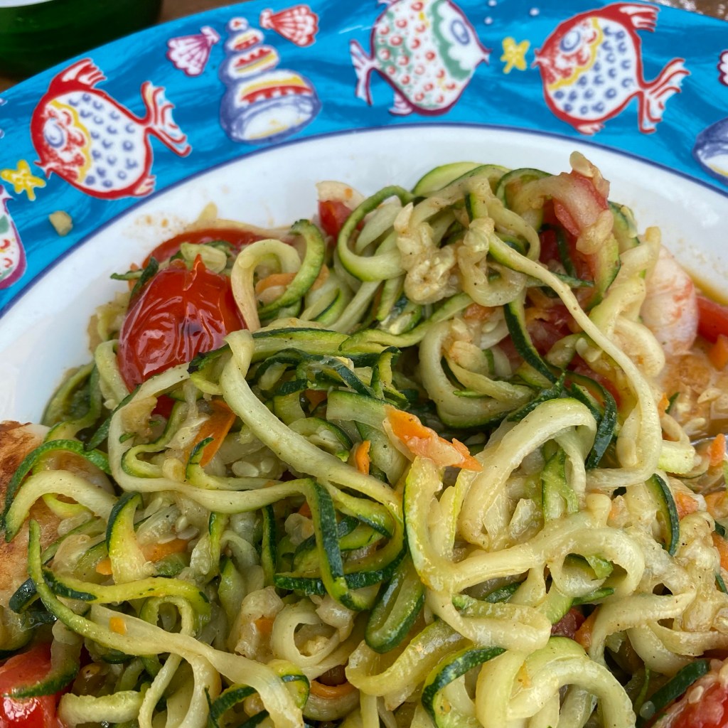 [Etwas später. kneteeis:] „Hm, die Zucchini-Spaghetti sind nicht unlecker, aber auch nicht so spektakulär. Wie ist Deine Pasta?“