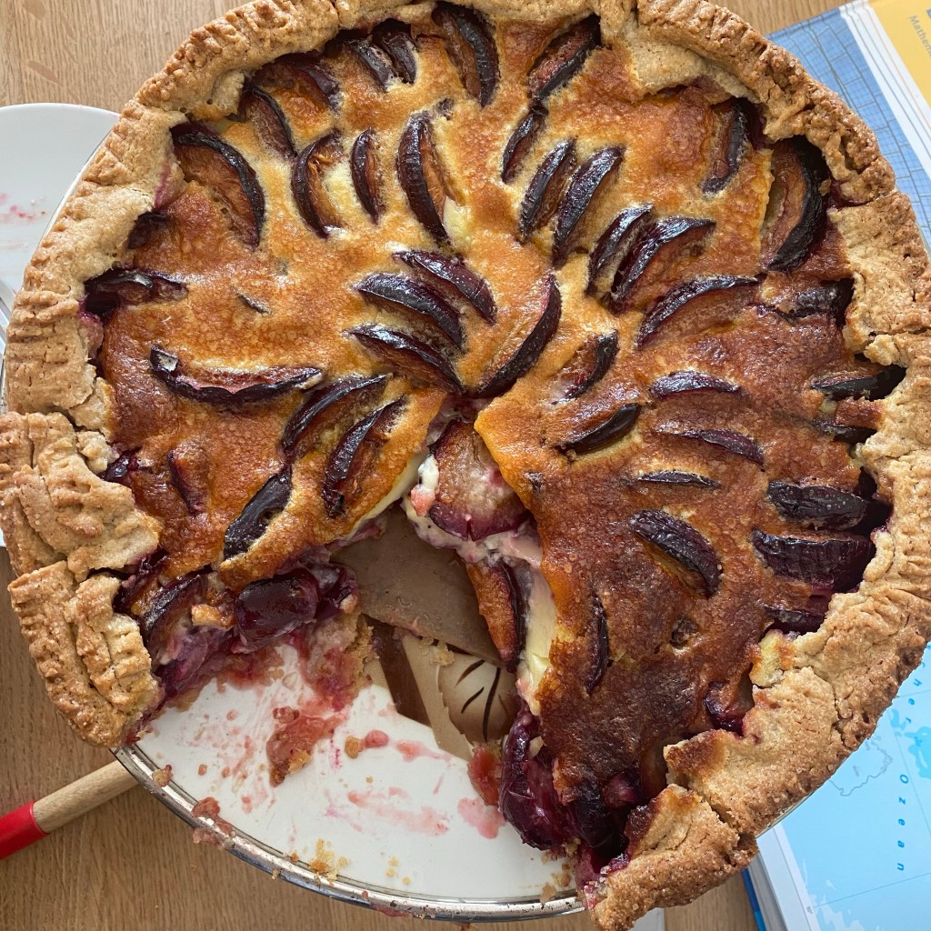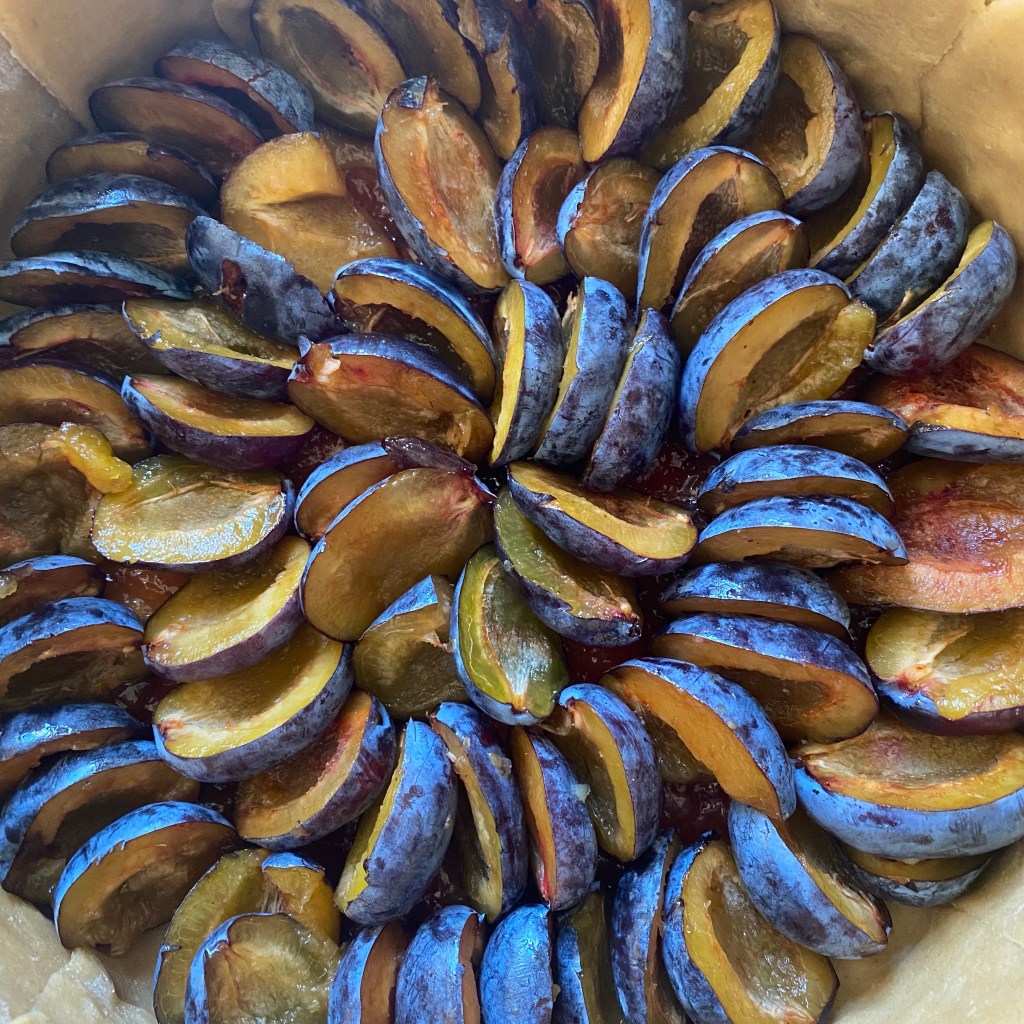 [Etwas später. kneteeis:] „Es gibt frischen Pflaumenkuchen! Soll ich den auf Deine neue Tortenplatte tun?“