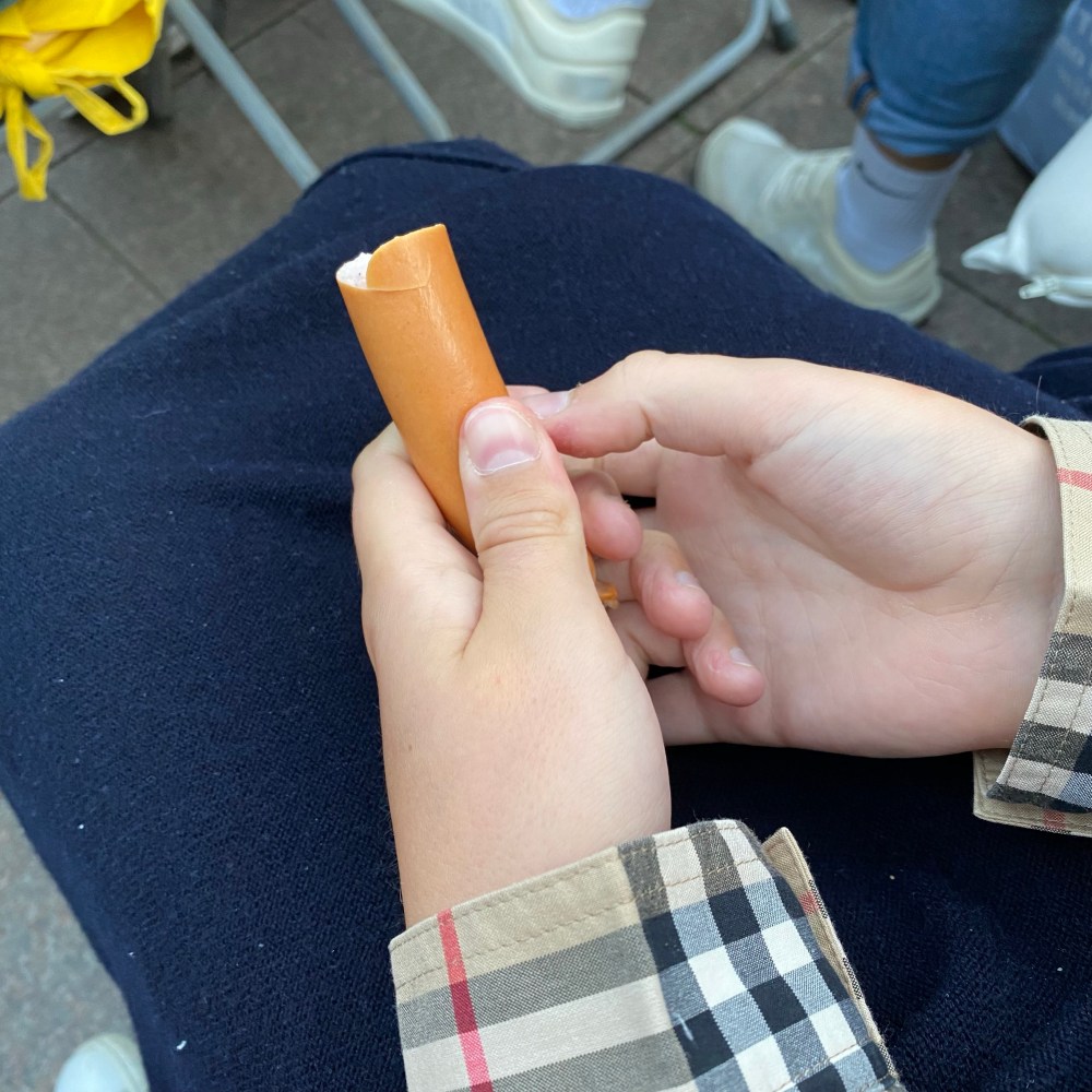 [Etwas später. Freunde per WhatsApp:] „Möchtet Ihr vielleicht ein Wiener Würstchen? Wir haben viel zu viel mitgenommen!“