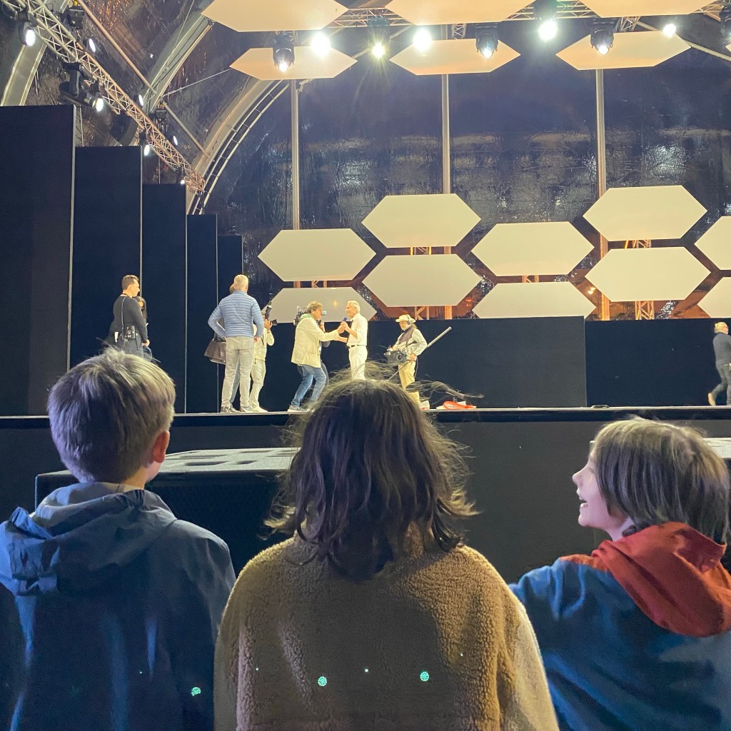 [Etwas später. Freunde:] „Großer Junge, wollen wir fragen, ob wir auf die Bühne dürfen?“