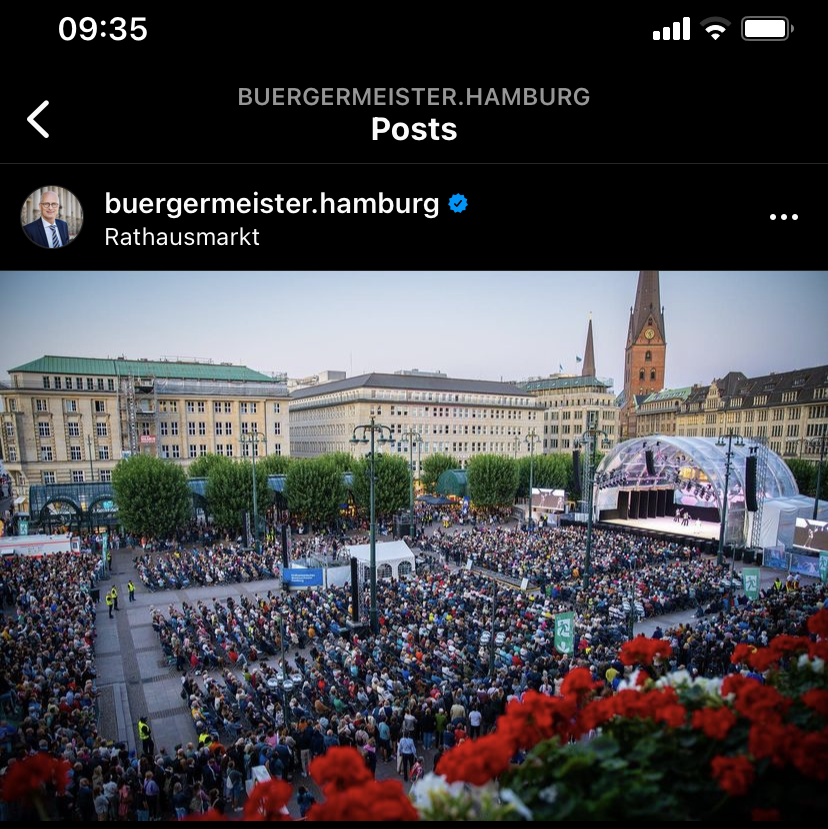 [kneteeis:] „Guck‘ mal hier: Kiran West hat in seiner Instagramstory einen Überblick über den ganzen Rathausmarkt gepostet – wenn man genau hinguckt, kann man uns vielleicht sehen!“