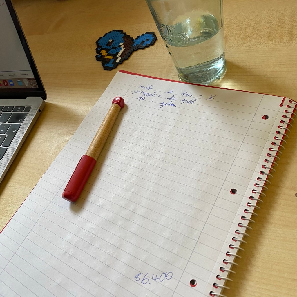 [GJ:] „Ich mache jetzt noch Englisch. Ich muss einen Text aufnehmen, damit unsere neue Englischlehrerin hört, wie wir sprechen.“