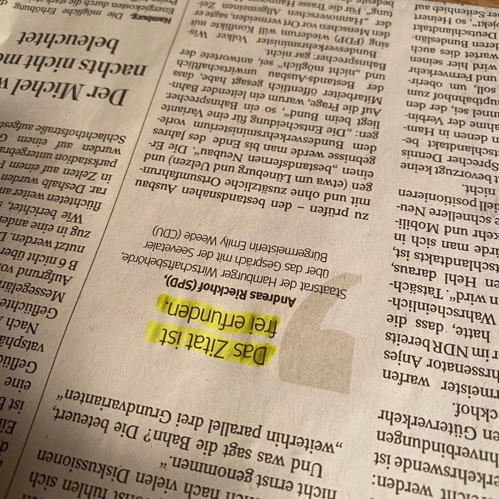 [GJ:] „Hier: ‚Das Zitat ist frei erfunden.'“