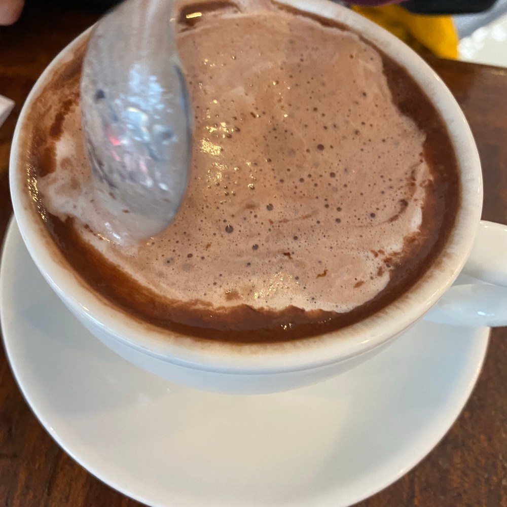 [Kurz darauf im Café. GJ:] „Ich nehme eine heiße Schokolade!“