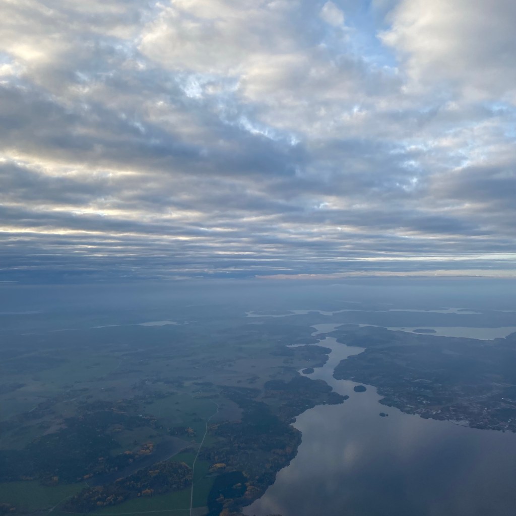 [Kurz darauf im Flugzeug. GJ:] „Hm, Stockholm war auf der anderen Seite. Aber ich mache einfach so ein Foto von Schweden von oben.“
