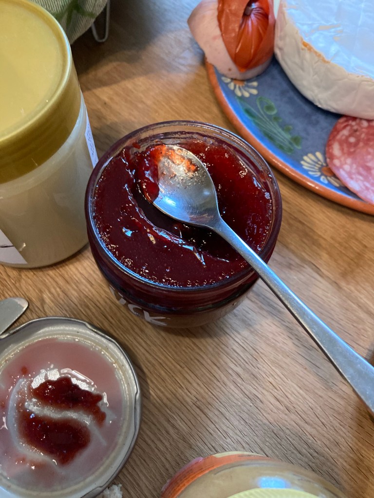 [KJ:] „Oh ja, Pflaume! Die hast Du doch gemacht, oder? Du bist eine voll gute Marmeladenköchin. Du könntest die Marmeladen ja verkaufen!“