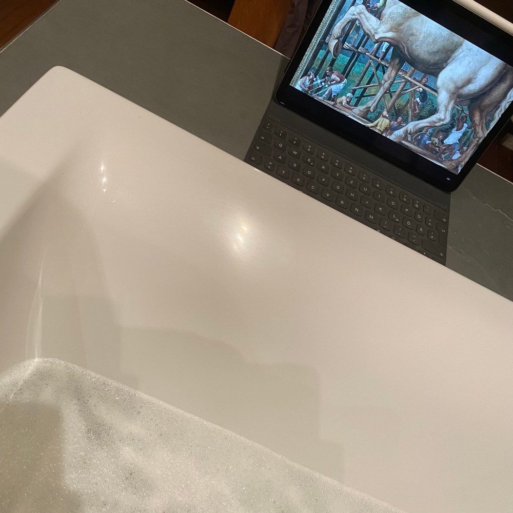 [GJ:] „Das iPad! Dann kann ich beim Baden den Film über den Trojanischen Krieg zuende gucken, den wir in Latein ansehen sollen!“