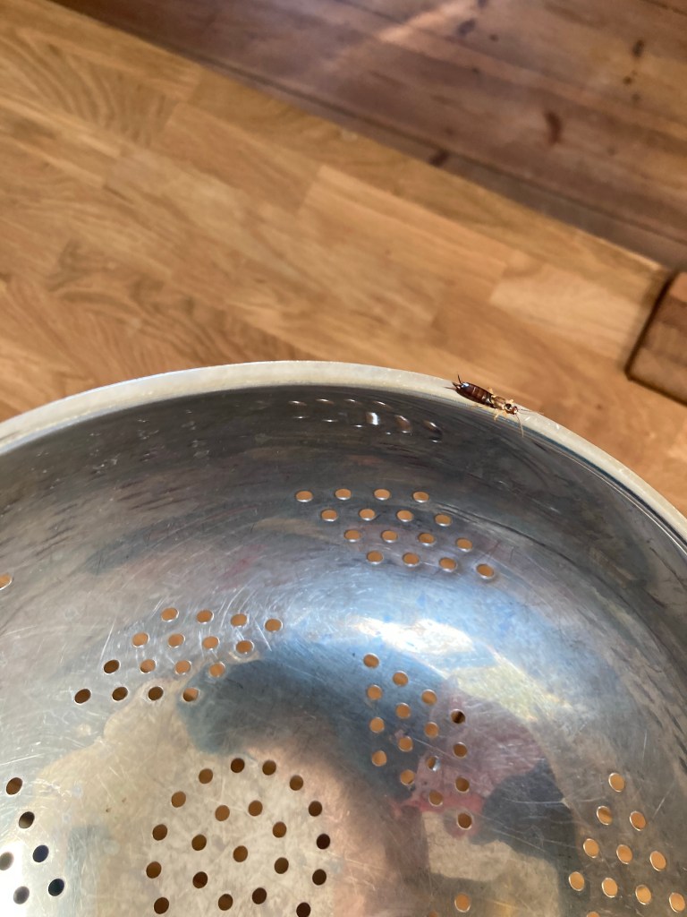 [Etwas später. KM:] „Guck mal, Mama! Ein Ohrenkäfer auf der Schüssel!“