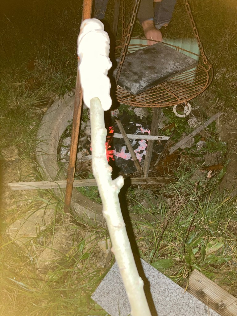 [Deutlich später:] „Bald ist das Stockbrot fertig … „
